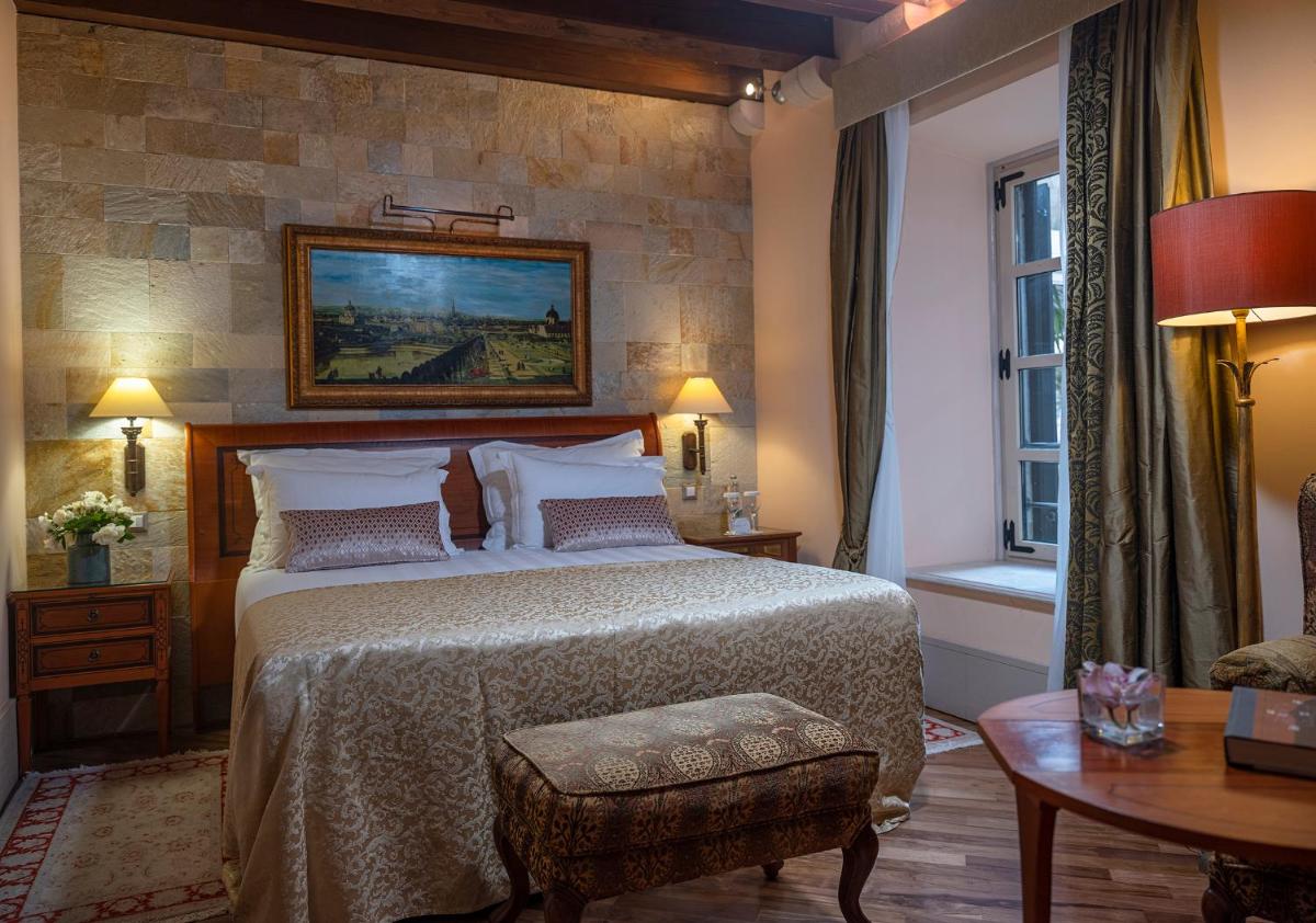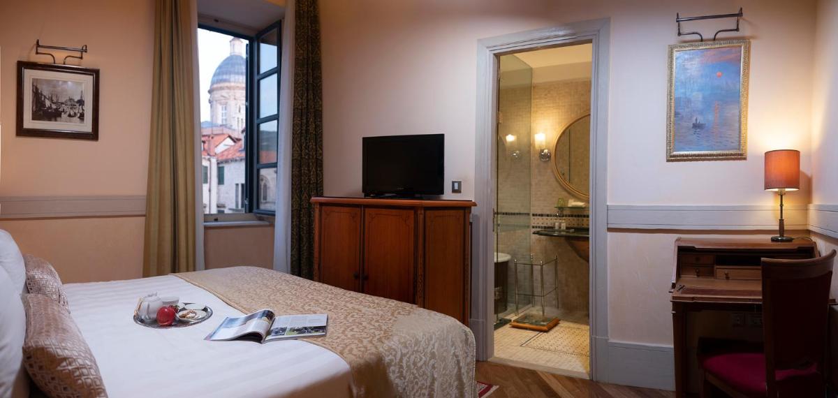 Los interiores se caracterizan por la piedra caliza original de Dubrovnik, vigas de madera a la vista, suelos de parqué y mobiliario clásico de lujo. Las 19 habitaciones y suites están diseñadas individualmente, ofreciendo una atmósfera aristocrática y tranquila. Muchas habitaciones tienen vistas a la animada plaza del mercado o a las pintorescas calles empedradas de la ciudad vieja, ofreciendo una inmersión completa en la vida de la ciudad.