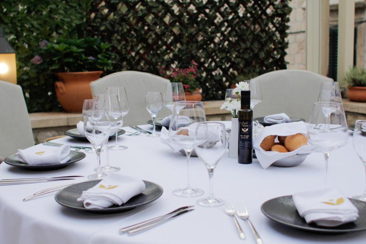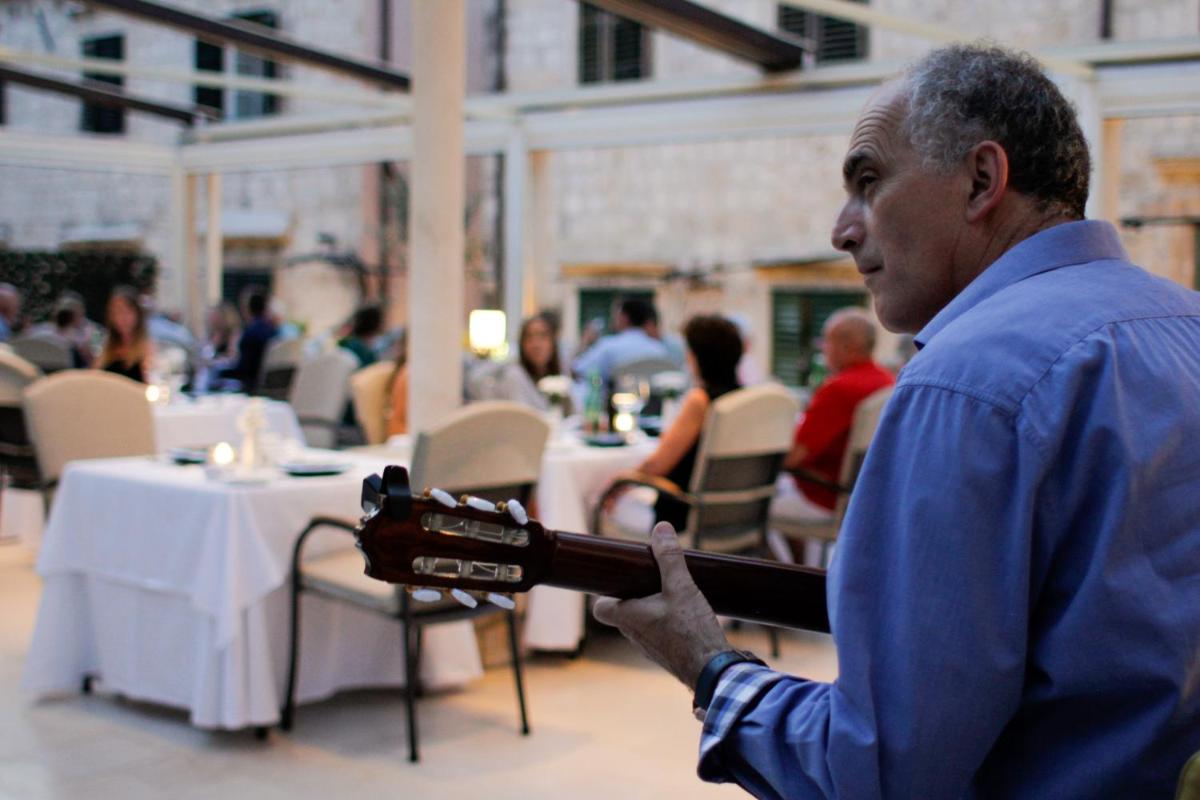 El hotel cuenta con varias opciones culinarias que celebran la cocina mediterránea y los sabores frescos de Dalmacia. El restaurante, a menudo ubicado en la plaza histórica o en una terraza panorámica, ofrece una experiencia gastronómica refinada y romántica, con vinos locales y platos a base de pescado fresco e ingredientes de temporada.