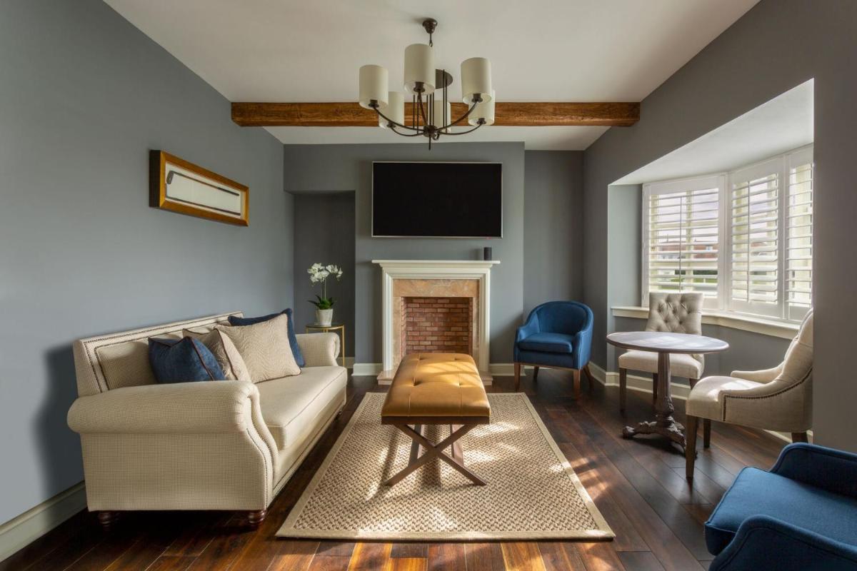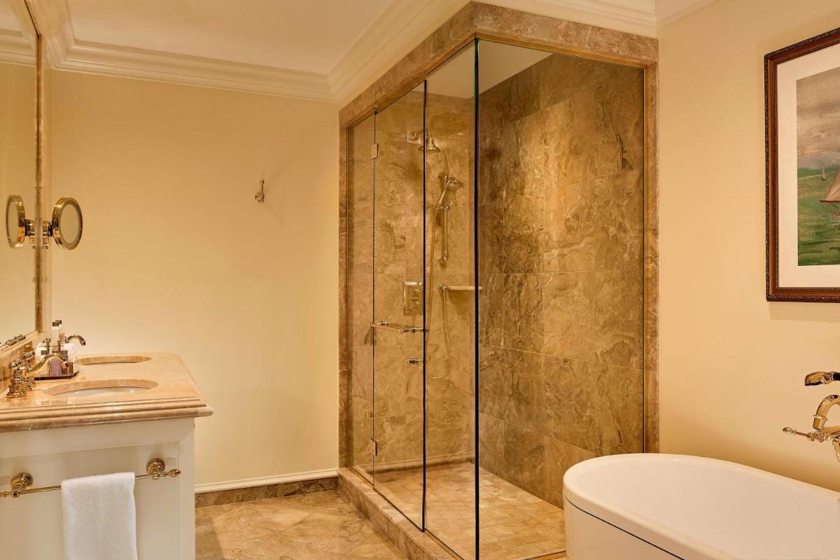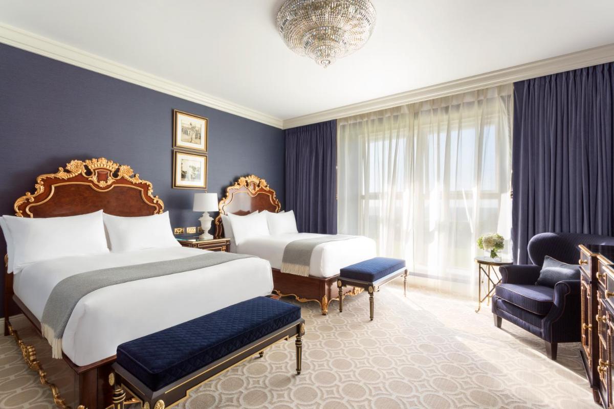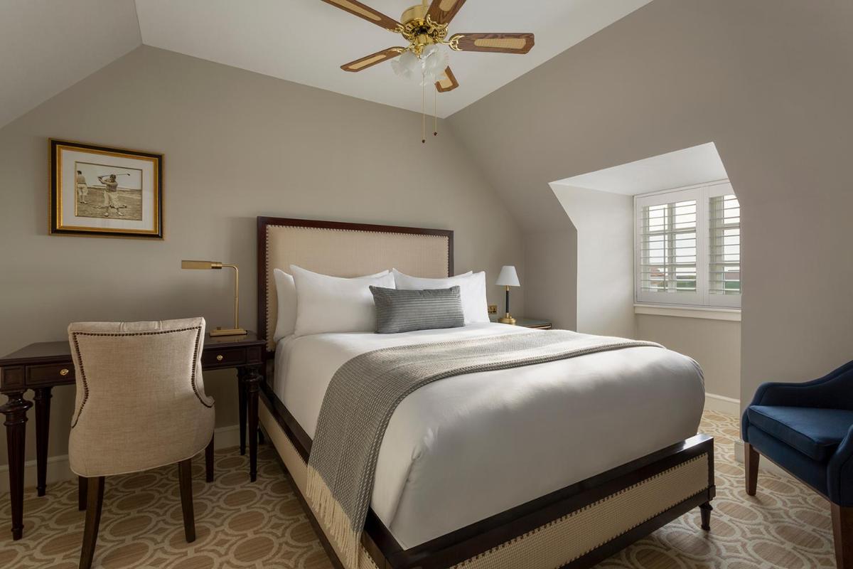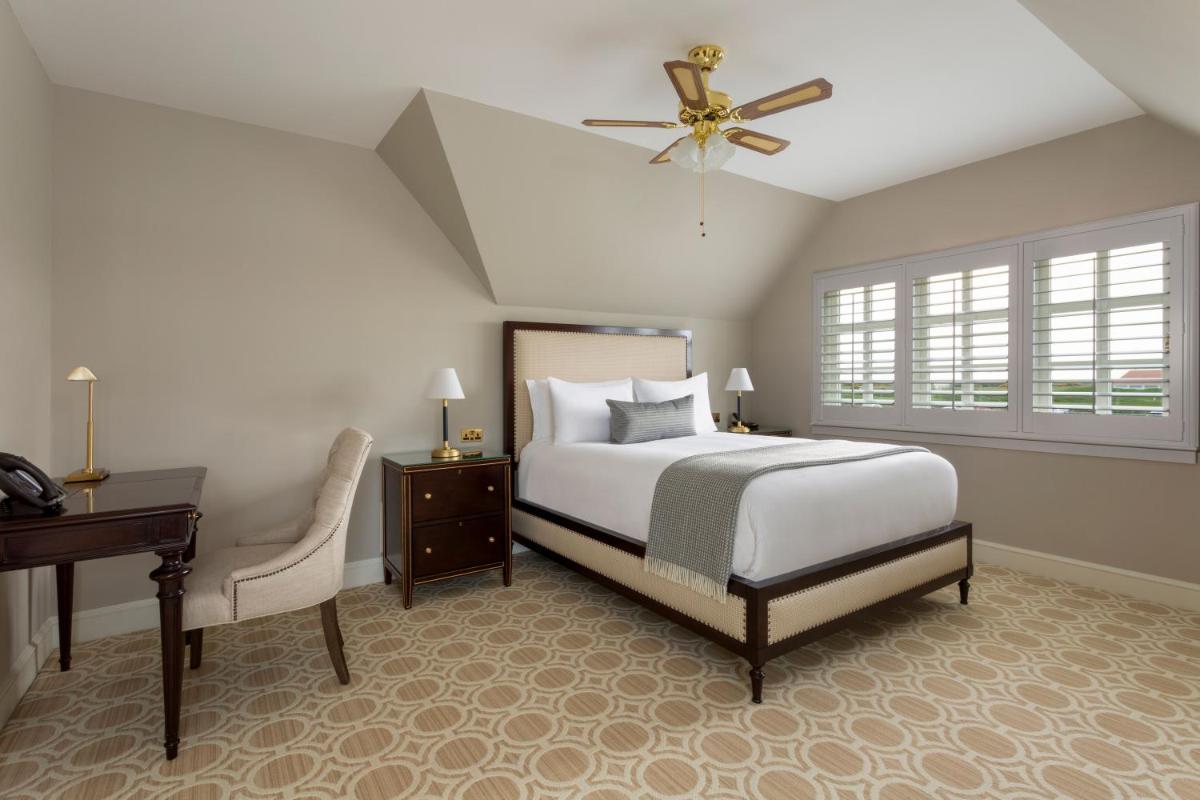 El hotel principal, con su imponente arquitectura, ha sido magníficamente renovado para ofrecer un lujo moderno manteniendo su encanto histórico. Las habitaciones y suites están decoradas en un estilo suntuoso y regio, ofreciendo el máximo confort y a menudo con vistas impresionantes del campo y el mar.