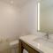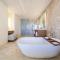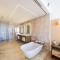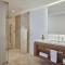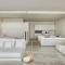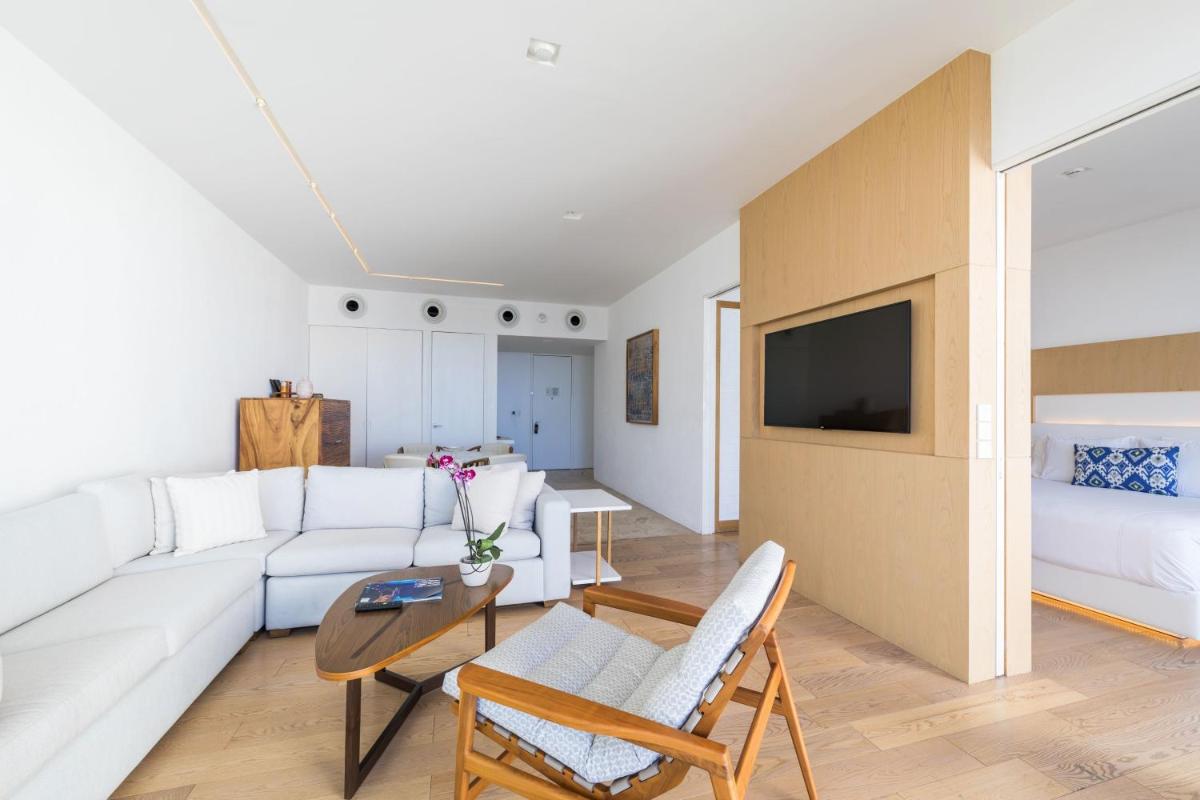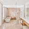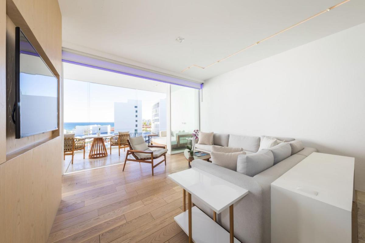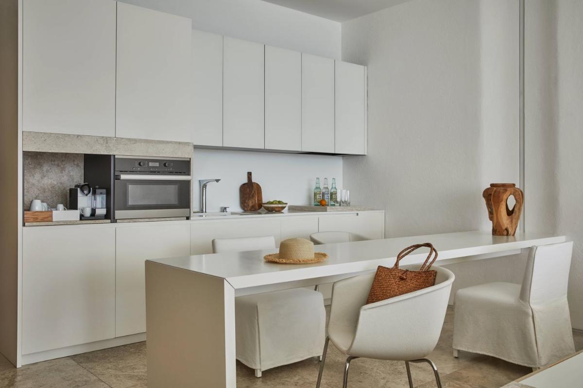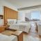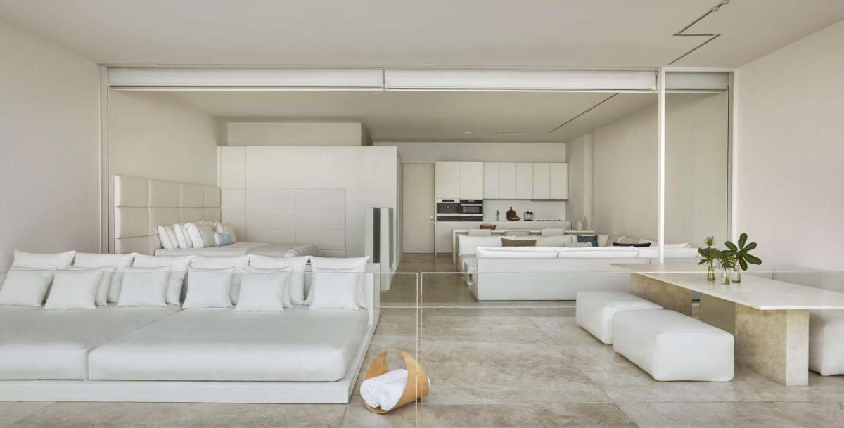 Esta suite cuenta con zona abierta que consta de dormitorio y zona de salón comedor, que da a una zona de estar al aire libre. La terraza ofrece vistas parciales al mar de Cortés y cuenta con asientos incorporados, mesa, bañera y tumbonas. También dispone de zona de trabajo, vestidor, TV de pantalla plana de 65 pulgadas, minibar y caja fuerte.