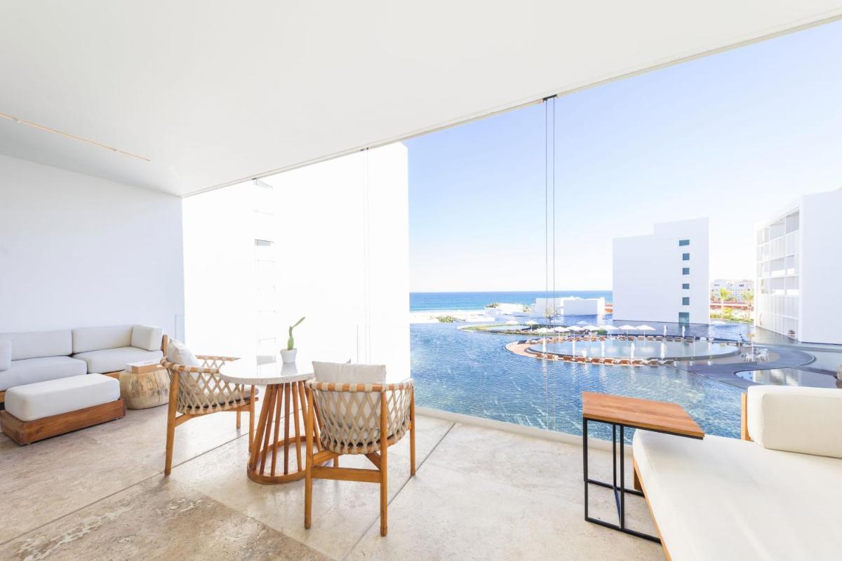 Viceroy Los Cabos es un resort de lujo de 5 estrellas en San José del Cabo, México, reconocido por su arquitectura vanguardista y minimalista creada por el arquitecto Miguel Ángel Aragonés. El hotel se presenta como una serie de cubos blancos interconectados, rodeados de espejos de agua, creando una experiencia visual de pura serenidad y diseño sofisticado directamente en la playa.