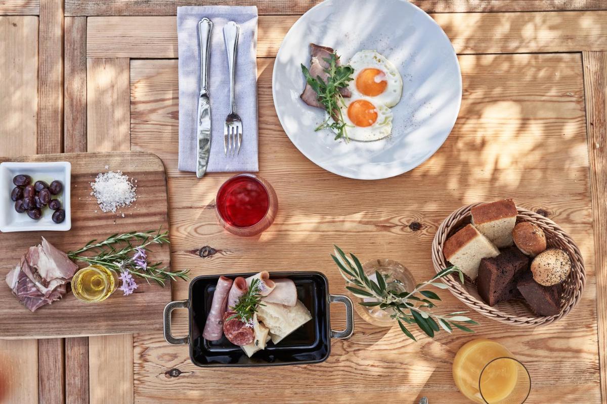 L'architecture imite les tours en pierre traditionnelles du Magne, combinant la robustesse de la pierre locale avec des intérieurs modernes et minimalistes. Le nom '100 Rizes' (100 racines) reflète le lien profond avec la terre.