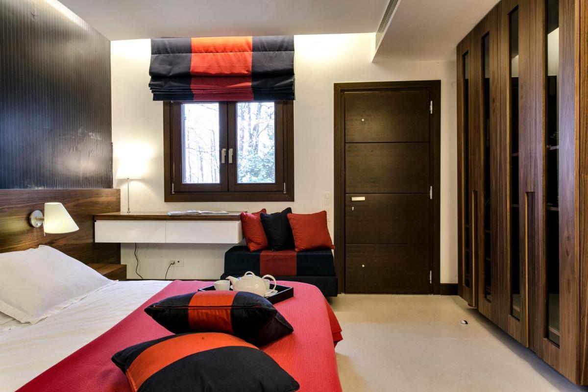 Les chambres et suites sont construites et décorées selon le style local, avec des cheminées et des meubles en bois, créant une atmosphère chaleureuse et accueillante, parfaite pour des vacances à la montagne en toutes saisons.