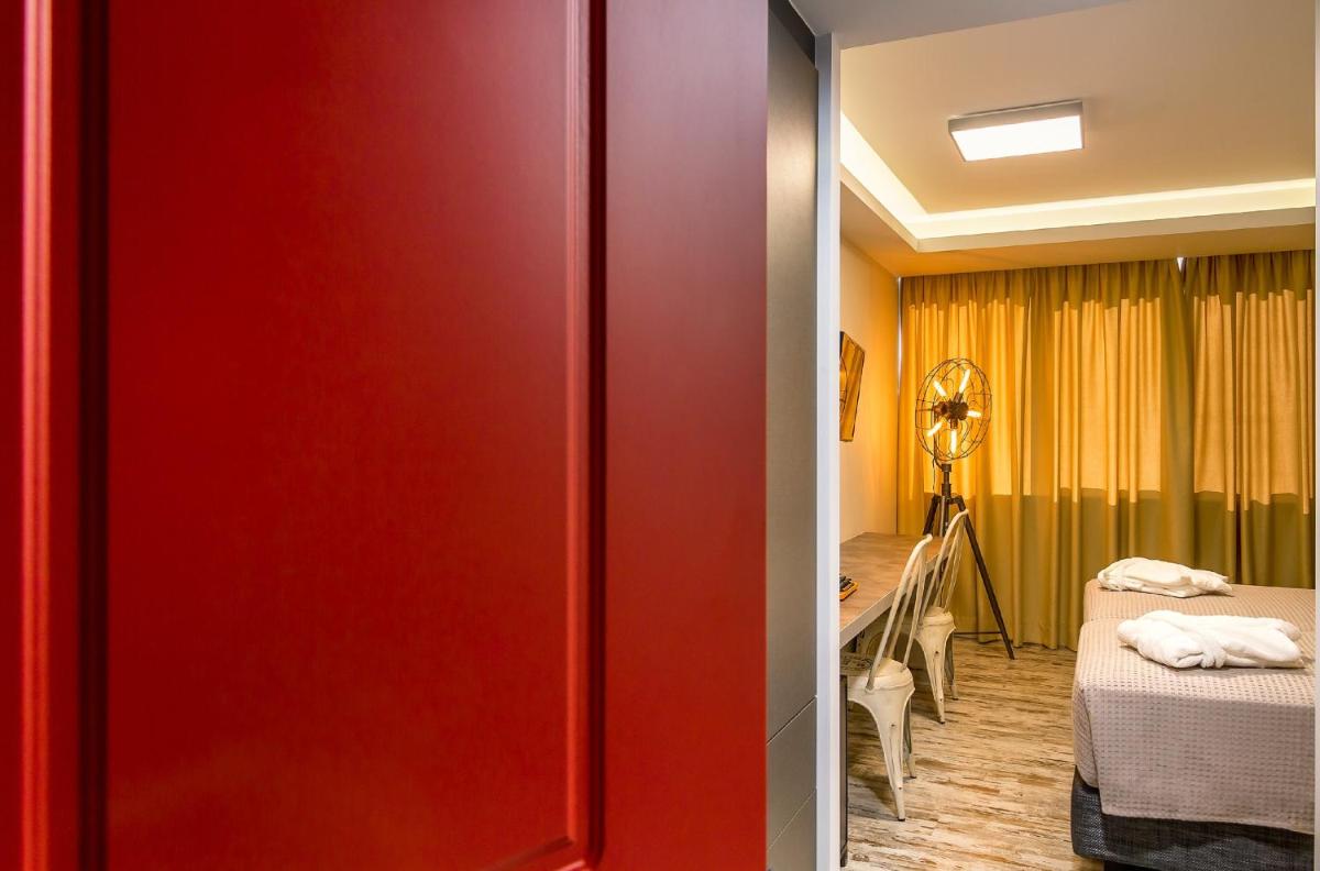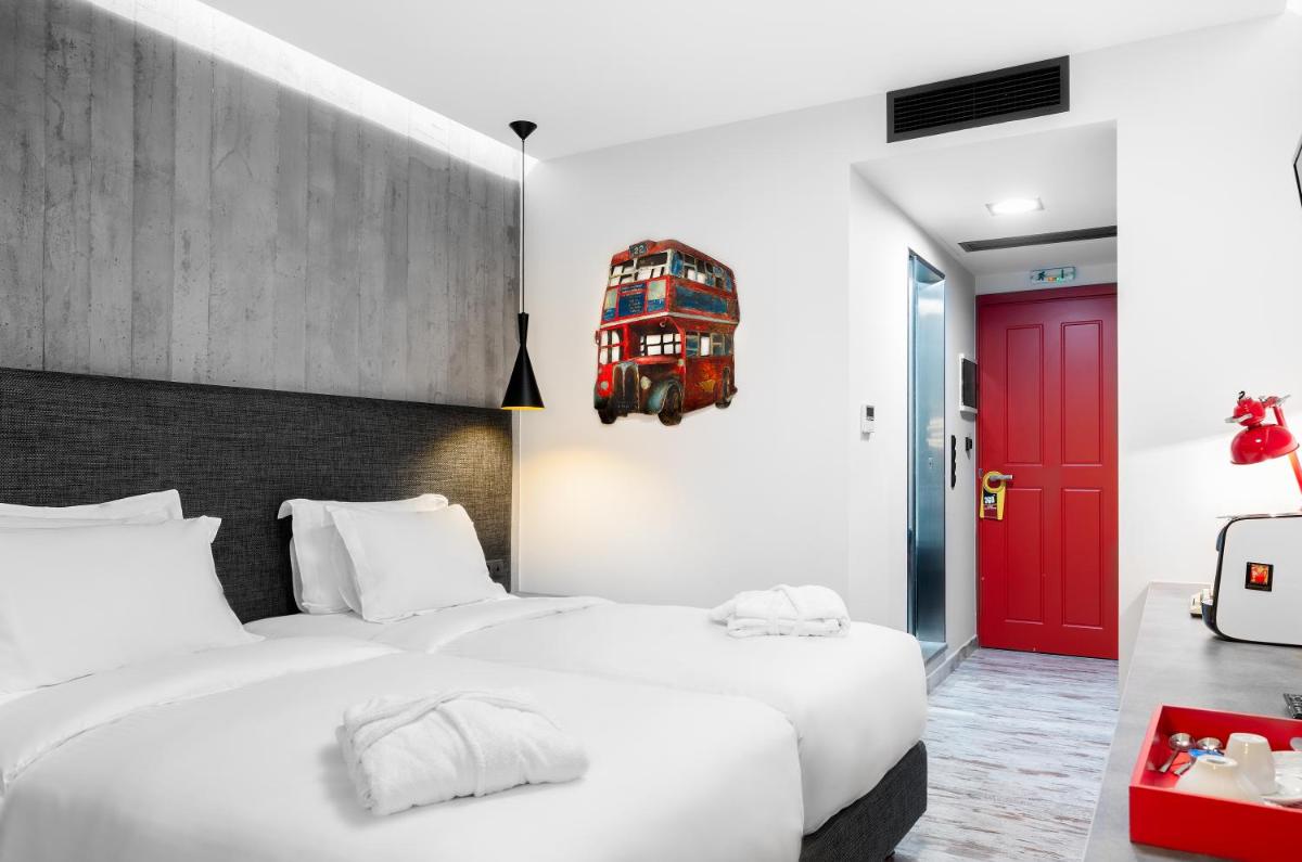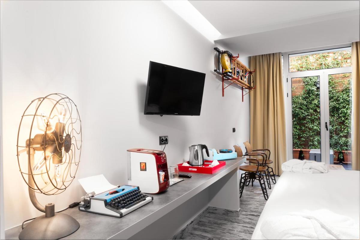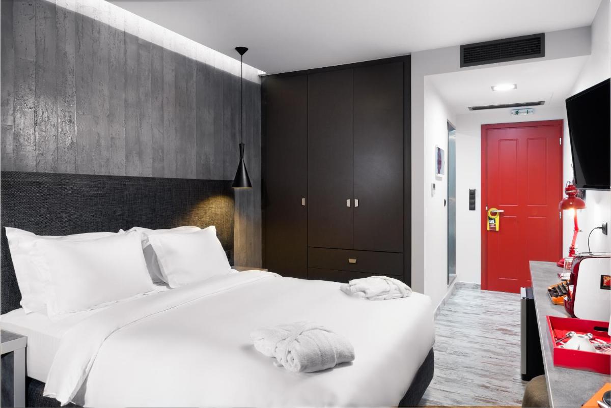 Les intérieurs présentent un style contemporain et minimaliste, avec une utilisation intelligente des couleurs vives, des matériaux naturels et des finitions lisses. Les chambres sont confortables et équipées de tout le confort, certaines avec des balcons privés avec vue sur l'Acropole.