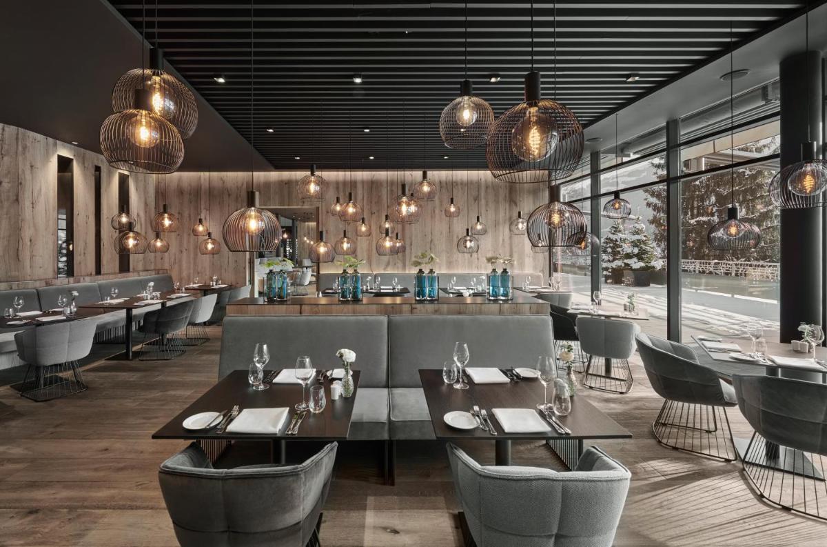 Le restaurant principal est réputé pour son excellente cuisine, qui se concentre sur des plats tyroliens et internationaux raffinés, préparés avec des ingrédients frais et régionaux. L'atmosphère est élégante et accueillante, avec la possibilité de dîner sur la terrasse panoramique pour profiter pleinement de la vue nocturne illuminée de Kitzbühel.