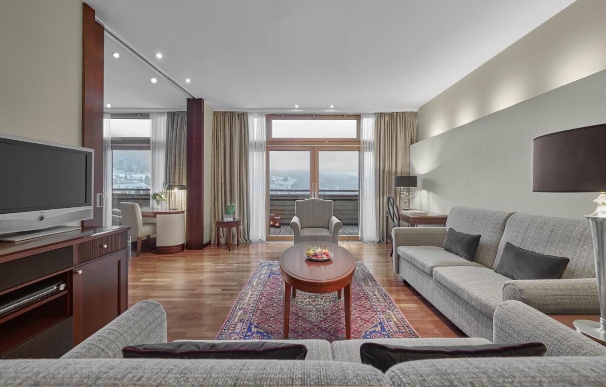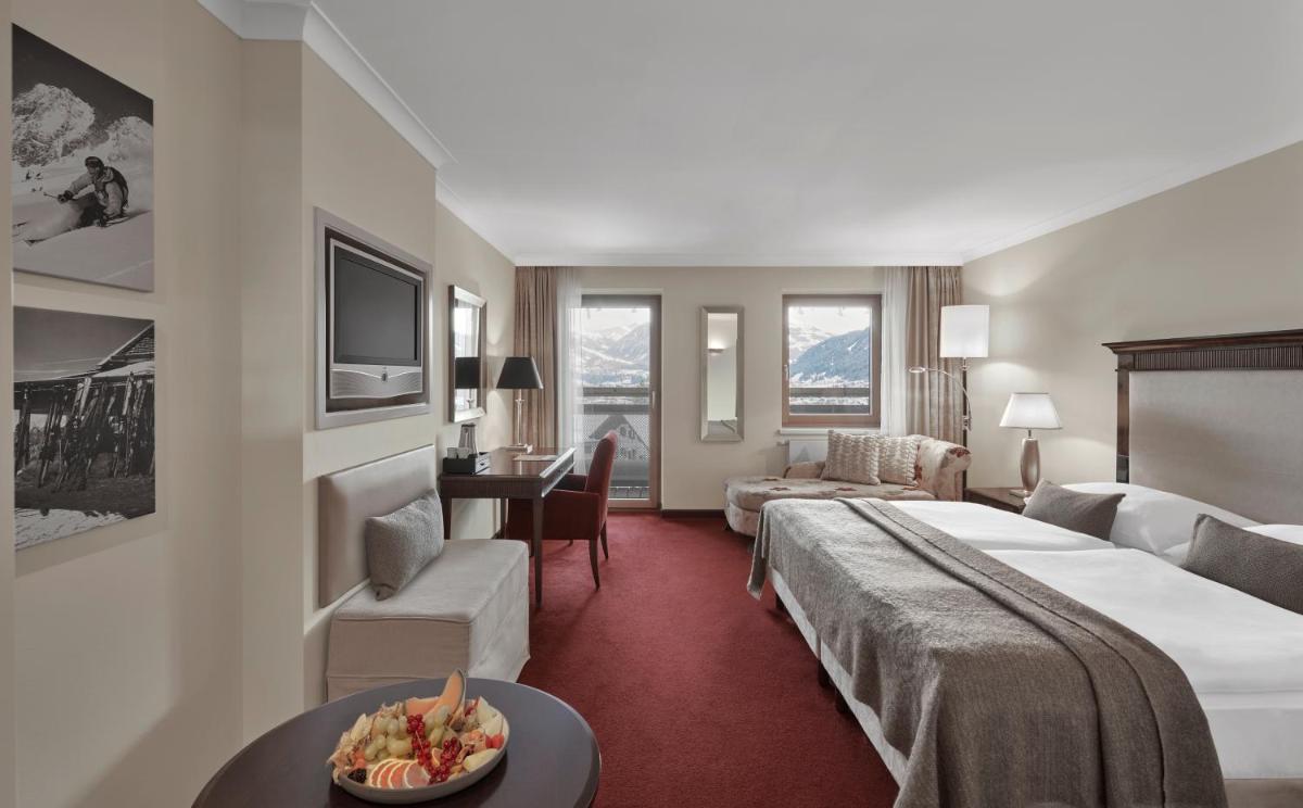 L'hôtel conserve l'imposante structure extérieure du château, tandis que les intérieurs ont été savamment rénovés pour offrir un luxe contemporain. Les chambres et suites sont spacieuses et reflètent une élégance classique, avec de grandes fenêtres qui encadrent le paysage alpin. La fusion entre passé et présent crée une atmosphère unique et royale.
