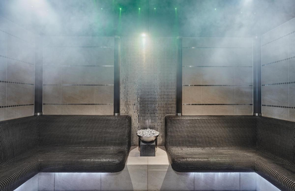 Le fleuron du bien-être est la piscine à débordement intérieure chauffée, située au dernier étage, qui offre une vue panoramique à 360 degrés sur la vallée et les sommets environnants, une expérience visuelle incomparable. Le spa et l'espace bien-être sont vastes et modernes, avec saunas, bains de vapeur et une large gamme de soins de luxe pour la détente après une randonnée ou une journée de ski.