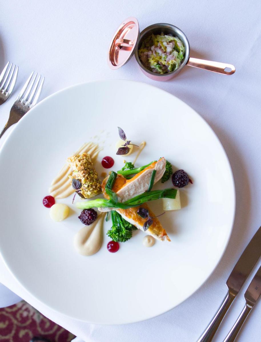 L'hôtel dispose d'un restaurant primé, où le chef propose une cuisine écossaise moderne avec un fort accent sur la fraîcheur et la saisonnalité des produits locaux, dont une grande partie provient de la région environnante. La salle à manger est un cadre formel et traditionnel, parfait pour un dîner mémorable.