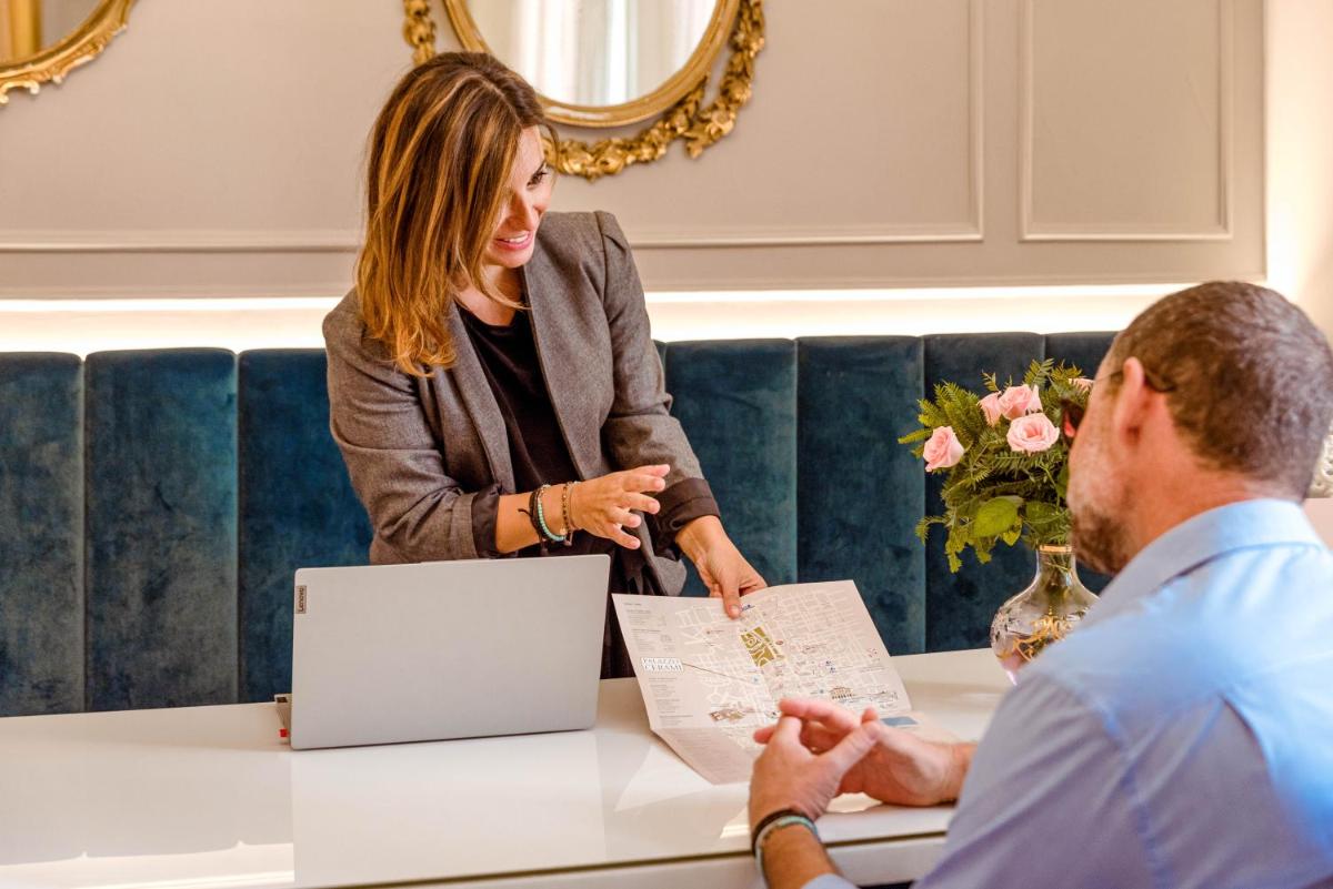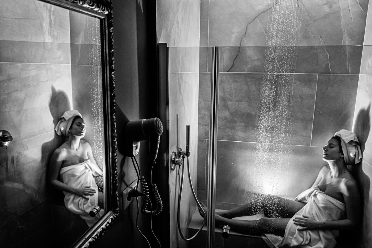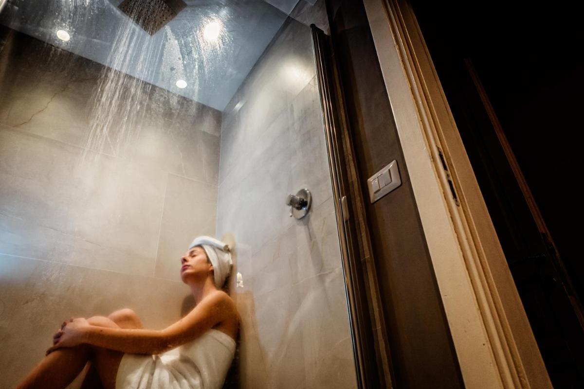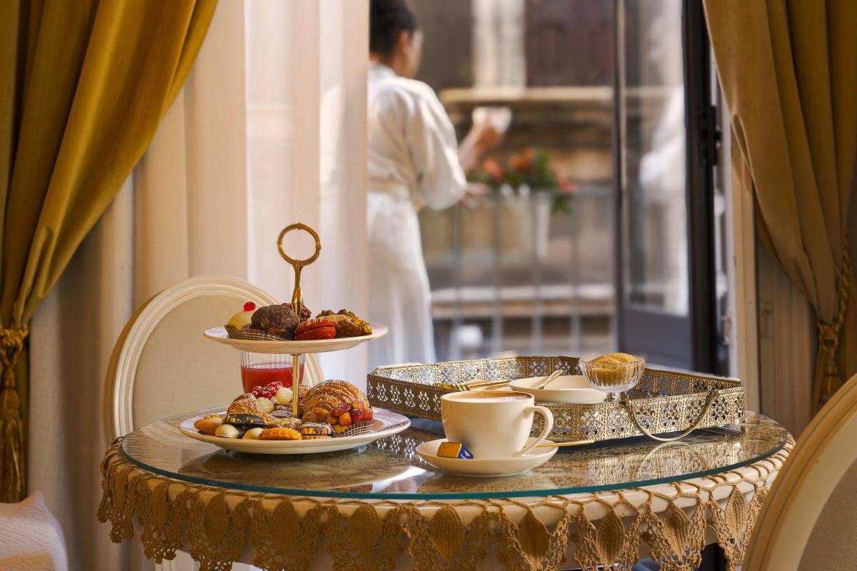 Chambres lumineuses avec balcon ou fenêtre sur cours et ruelles baroques. Équipements : climatisation, Wi‑Fi, smart TV, minibar, coffre‑fort, bouilloire/machine à café et salles de bain avec grande douche, set de courtoisie et sèche‑cheveux. Certaines catégories avec baignoire hydromassante.