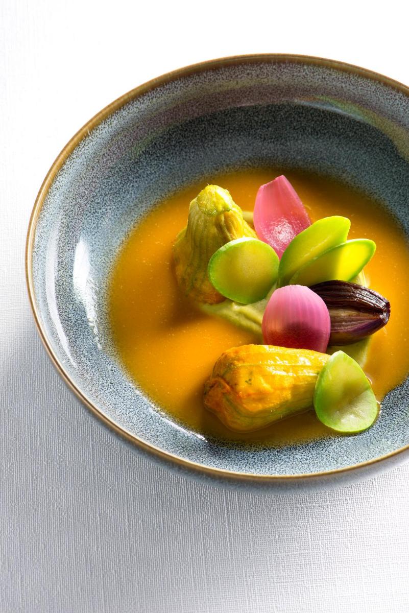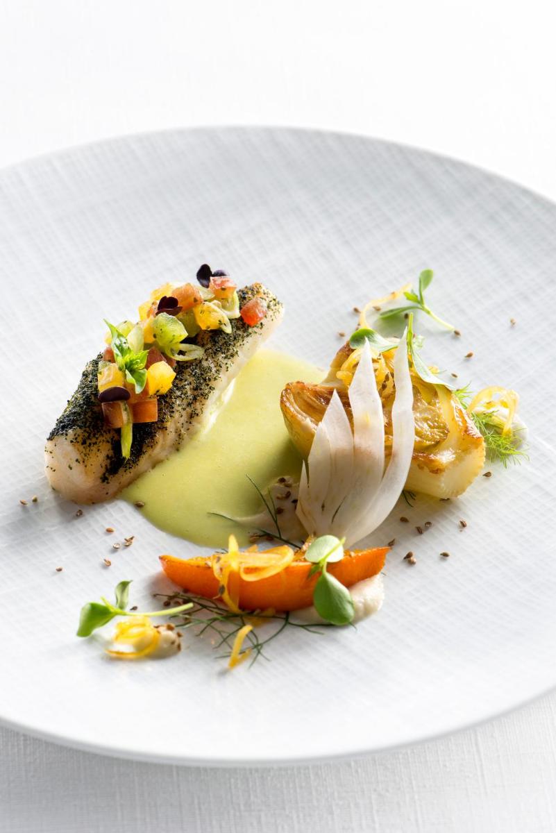 Le restaurant est le cœur battant de la propriété. La cuisine du Chef Chibois est réputée pour sa créativité et l'utilisation de produits très frais et locaux, célébrant les saveurs de la Provence. Dîner ici est une expérience culinaire inoubliable, souvent sur la terrasse avec vue panoramique.