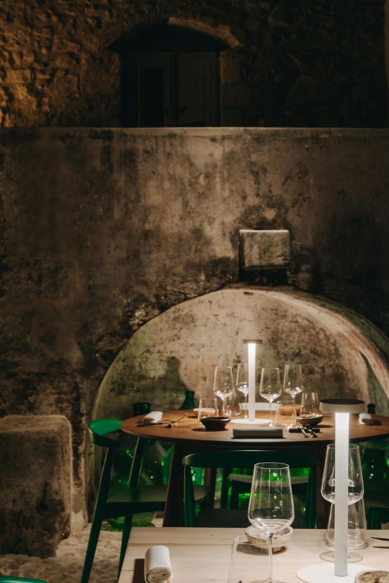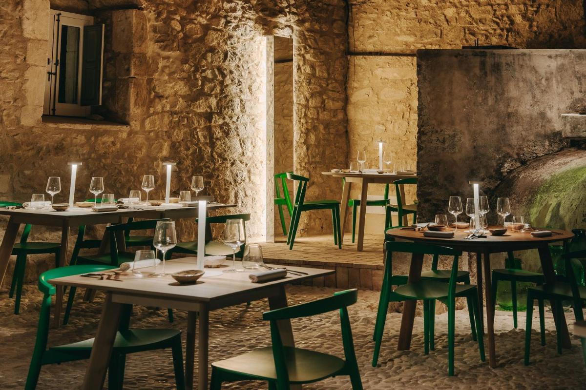 Le restaurant propose une cuisine de saison, mettant en valeur les produits du potager et des fermes voisines. Ateliers de cuisine, pressage d’huile d’olive, cours gastronomiques et accords mets‑vins complètent une offre culinaire engagée et locale.