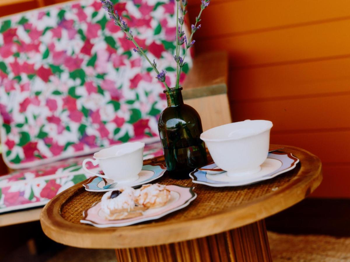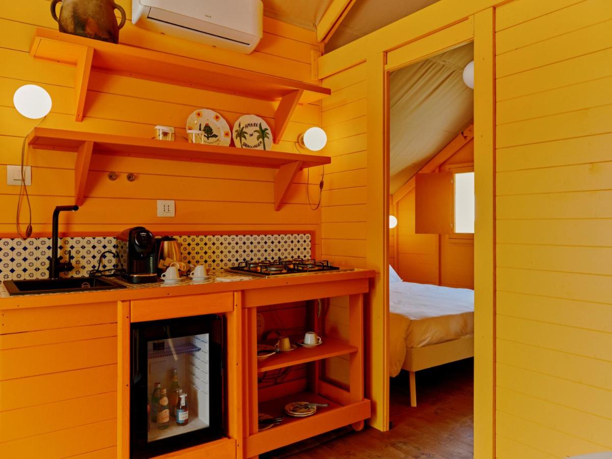 Le resort offre 3 suites luxueuses (dont Tangerine, Amare et Geranium) et 6 éco‑villas indépendantes, toutes décorées par le designer Alessandro Enriquez. Chaque hébergement marie pierre, bois, textiles artisanaux et confort moderne : climatisation, minibar, café Lavazza, Wi‑Fi et terrasse ou jardin.