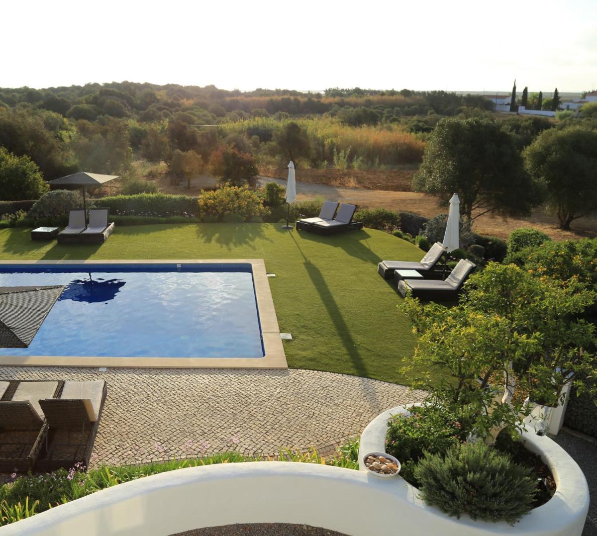 La propriété offre une véritable oasis de détente avec accès à deux piscines extérieures et, notamment, à un lac naturel baignable. Ce plan d'eau écologique est entouré de jardins luxuriants, de vastes pelouses et de chaises longues, créant le cadre parfait pour la sérénité et la détente sous le soleil portugais.