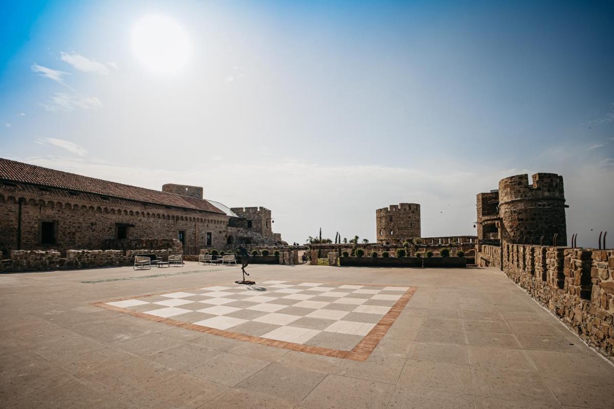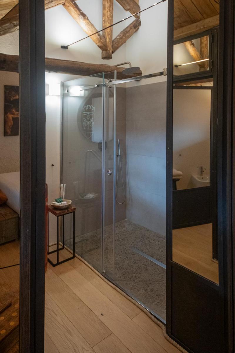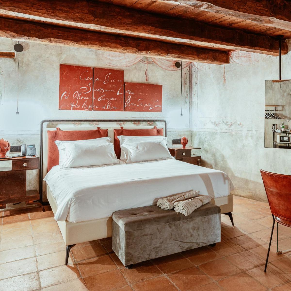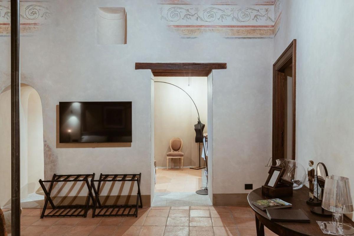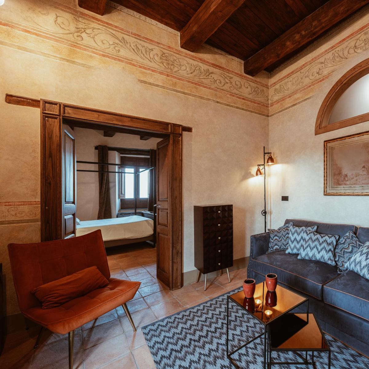 L'hôtel dispose d'un nombre limité de Chambres et Suites de Luxe (telles que Romantic Room, Romantic Junior Suite, Suite Royal, Suite sur le Borgo et Torre Reale), toutes finement meublées. Les hébergements se caractérisent par un style sophistiqué, avec des équipements modernes, notamment la climatisation, le Wi-Fi gratuit, un minibar et une Smart TV. De nombreuses suites de prestige (y compris celles dans les tours) offrent un Bain à Remous ou une baignoire îlot et bénéficient d'un balcon panoramique ou de grandes fenêtres avec une vue imprenable.