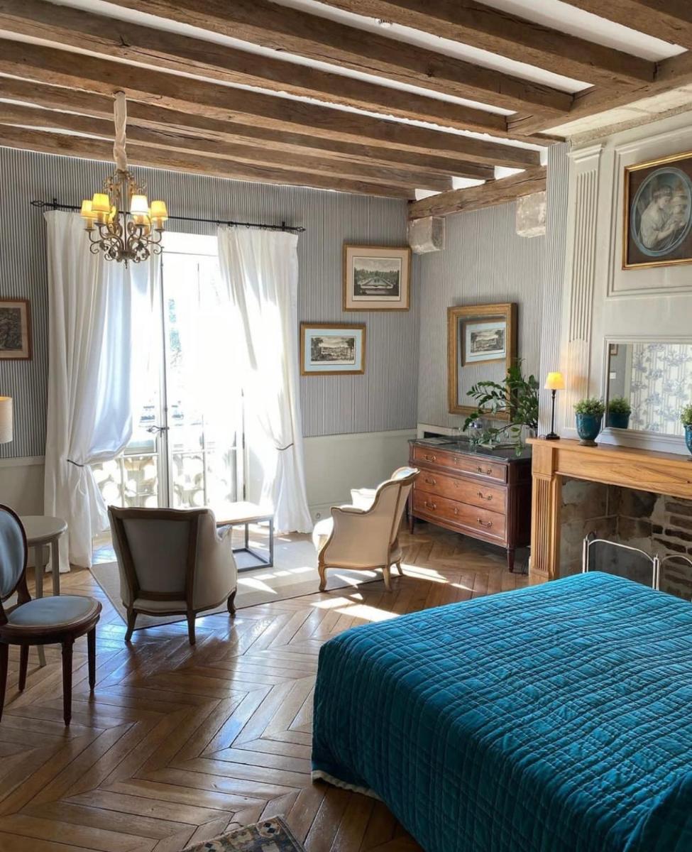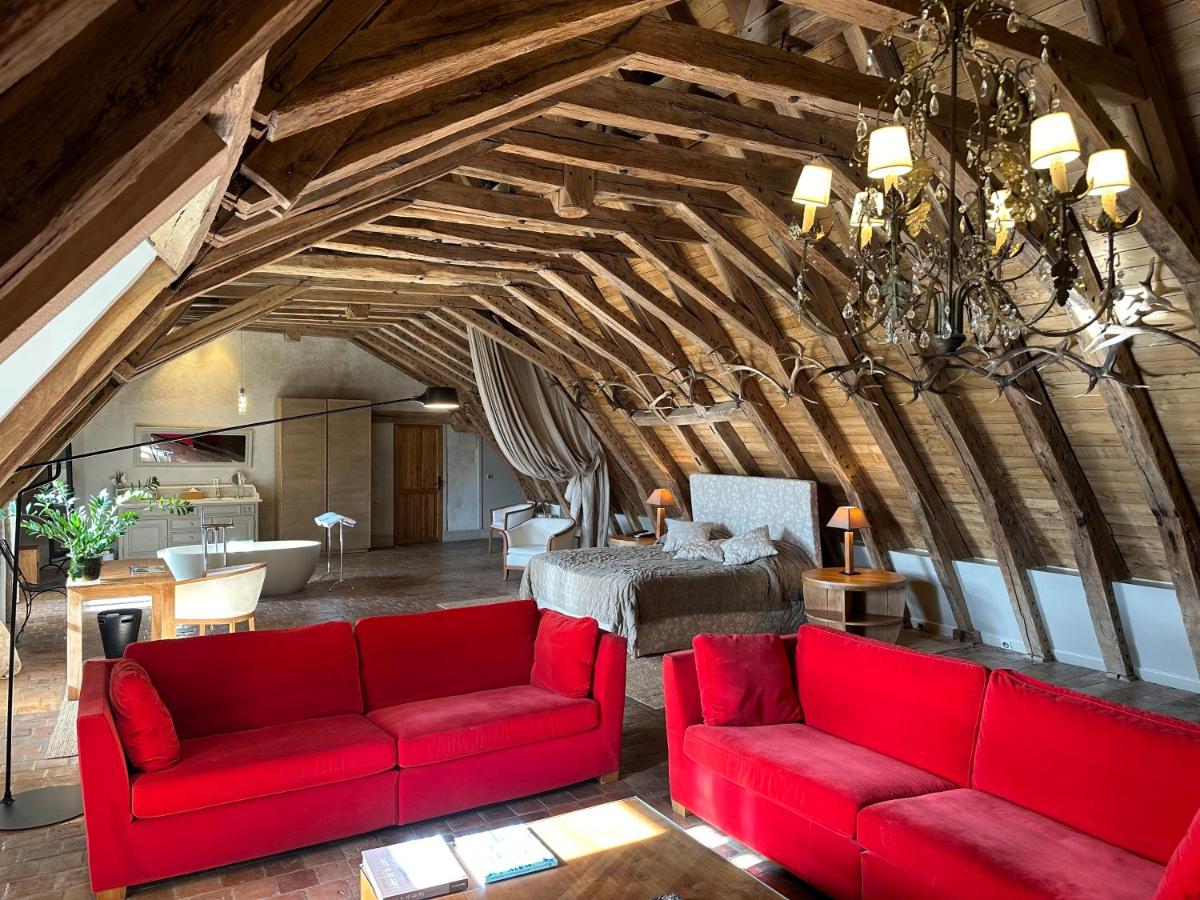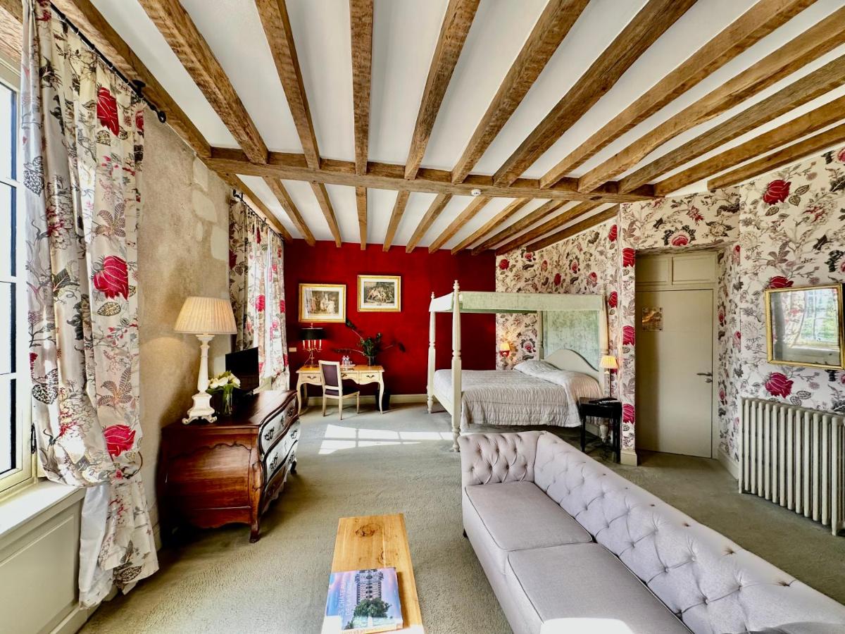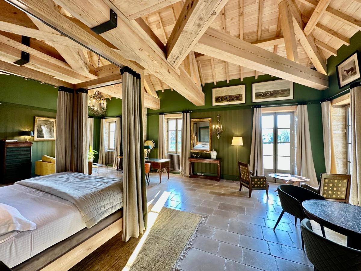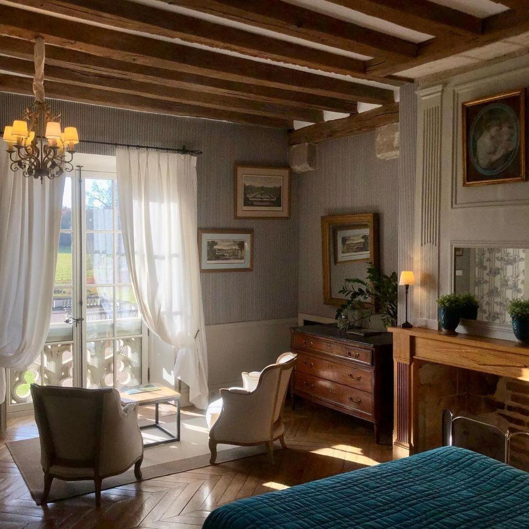 Les chambres et suites, situées dans le château et ses dépendances, conservent le charme d'époque avec un mobilier traditionnel, des tissus précieux et, dans certains cas, des cheminées d'origine et des poutres apparentes. La restauration a maintenu l'authenticité historique tout en intégrant le confort moderne, assurant un séjour somptueux et immersif.