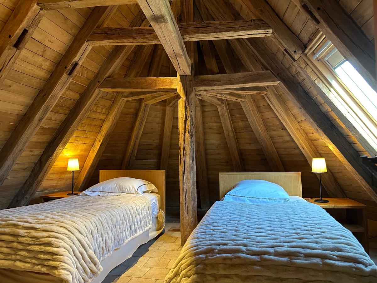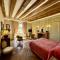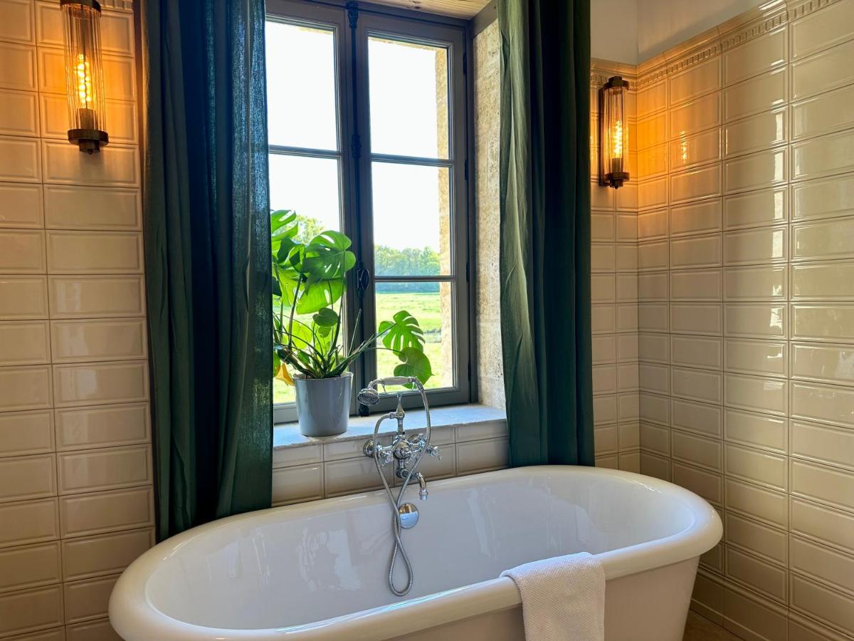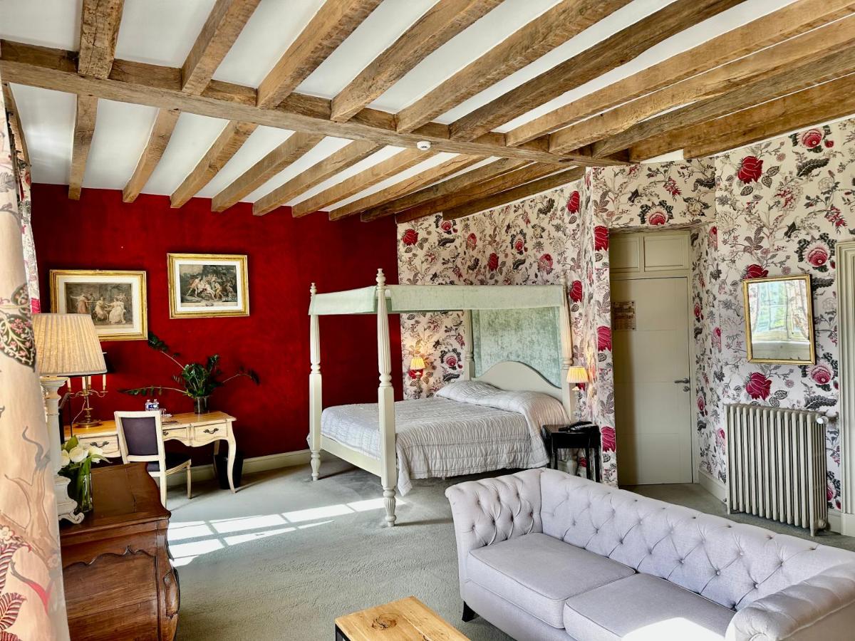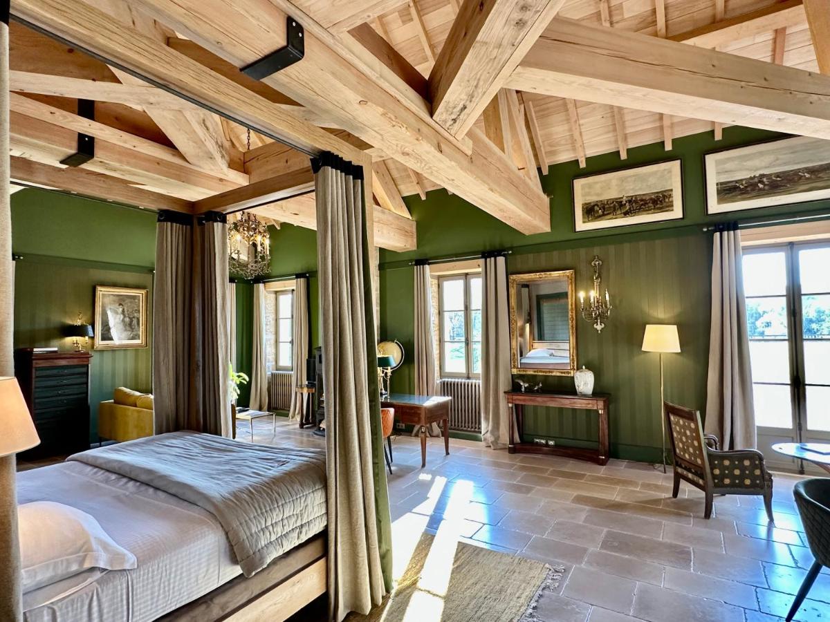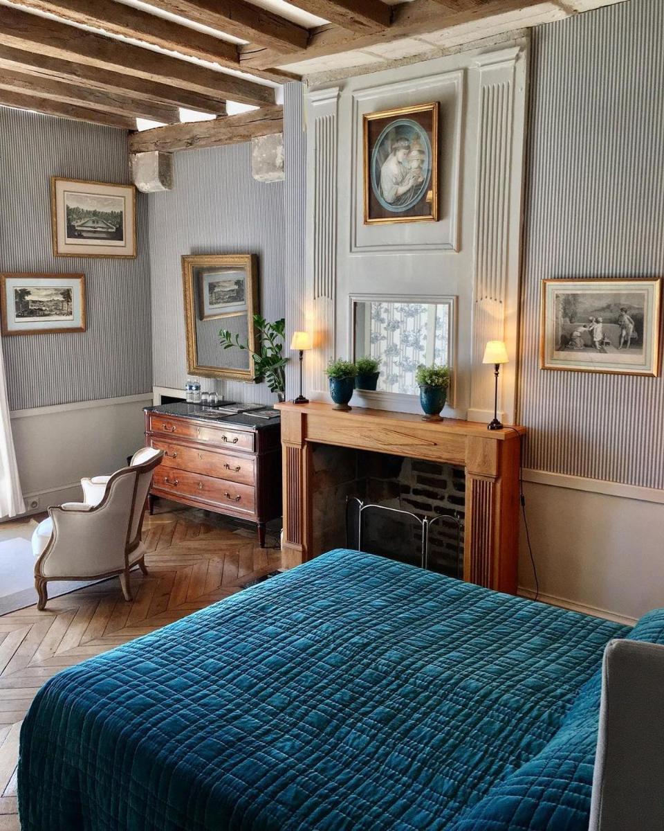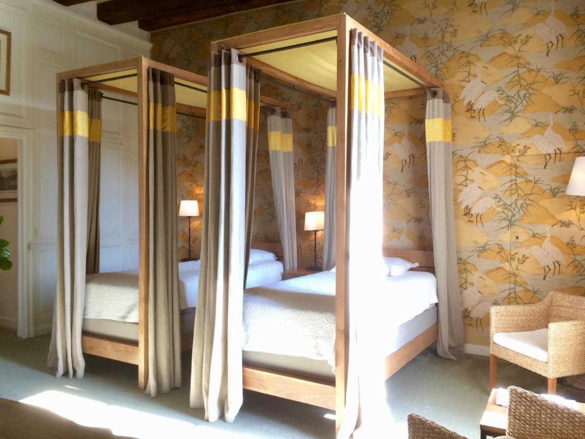 Les chambres et suites, situées dans le château et ses dépendances, conservent le charme d'époque avec un mobilier traditionnel, des tissus précieux et, dans certains cas, des cheminées d'origine et des poutres apparentes. La restauration a maintenu l'authenticité historique tout en intégrant le confort moderne, assurant un séjour somptueux et immersif.