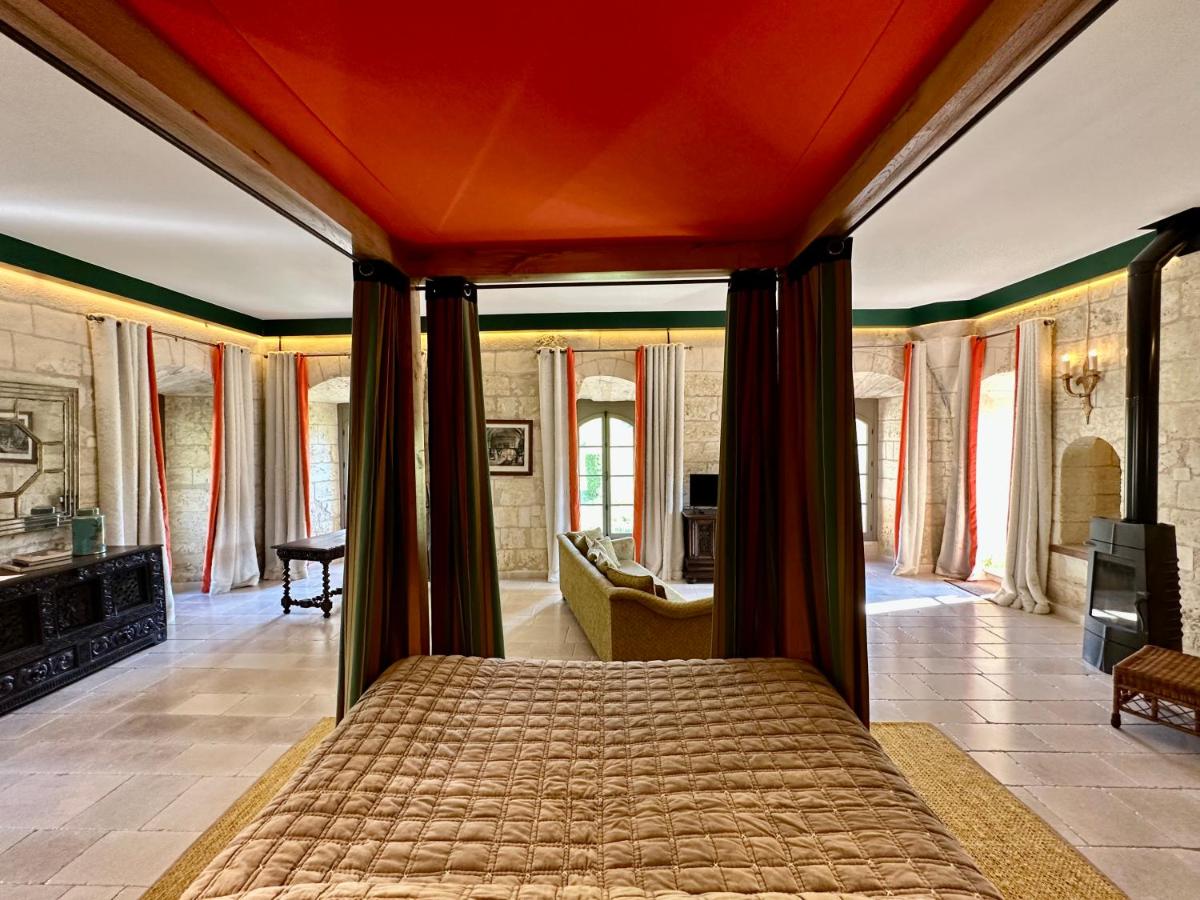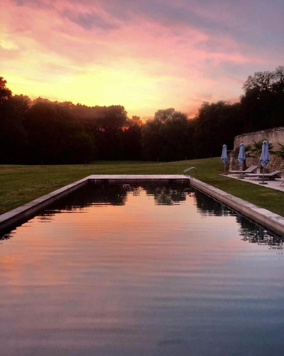 Le château dispose d'une grande piscine extérieure chauffée, entourée d'un jardin luxuriant, parfaite pour se détendre pendant la saison estivale. À la tombée de la nuit, le château s'illumine, créant une atmosphère magique qui invite à de longues promenades dans le parc ou à savourer un verre de vin sur les terrasses panoramiques.