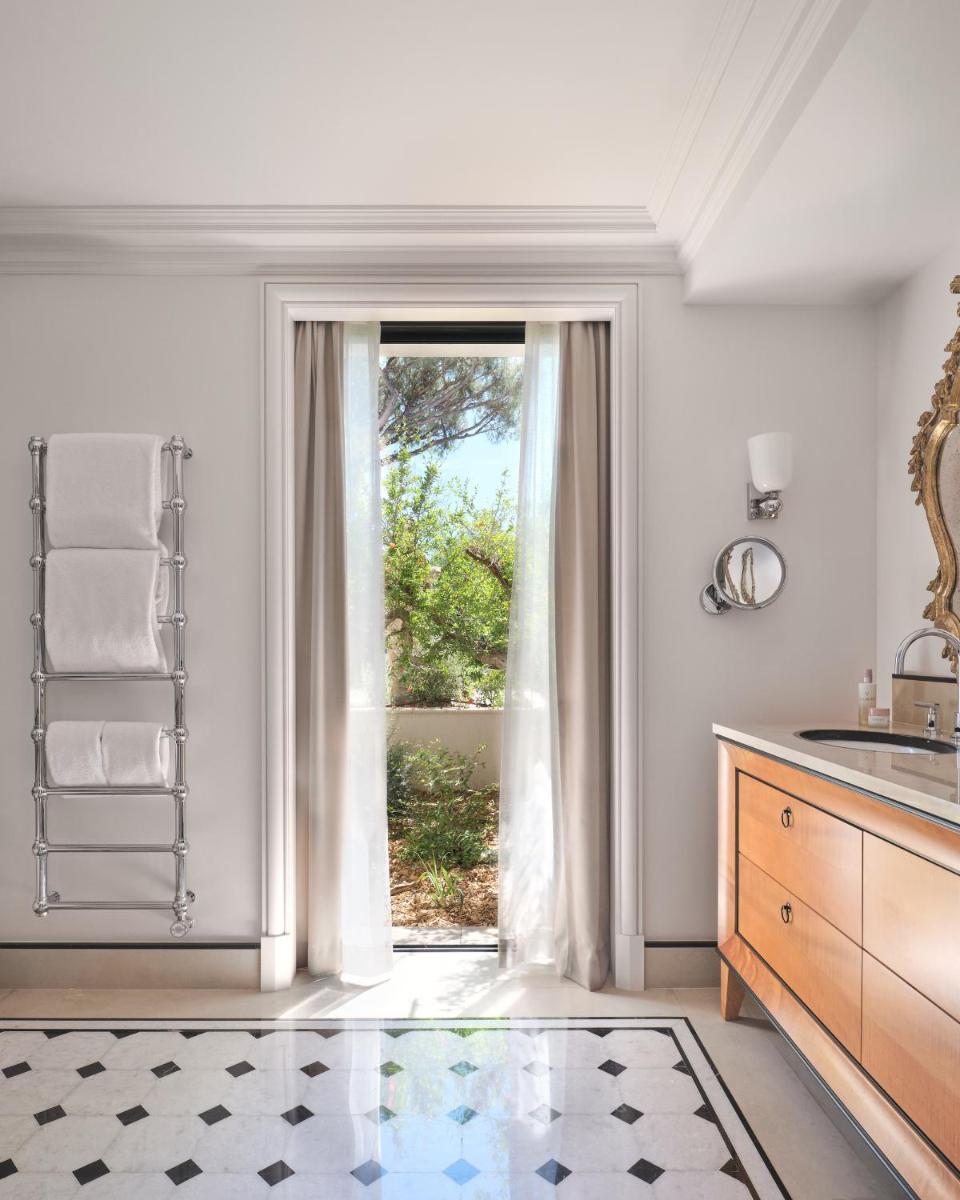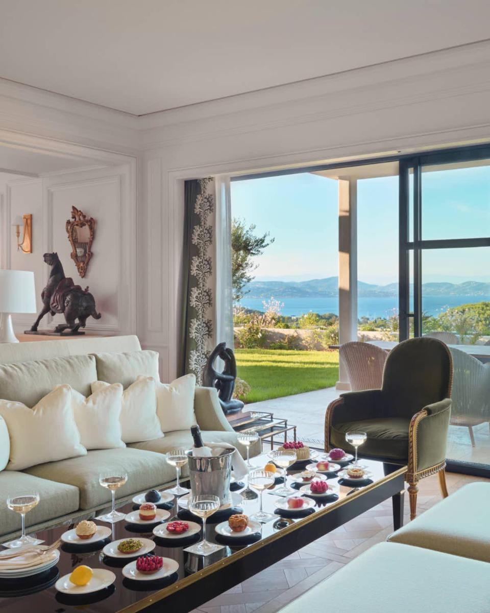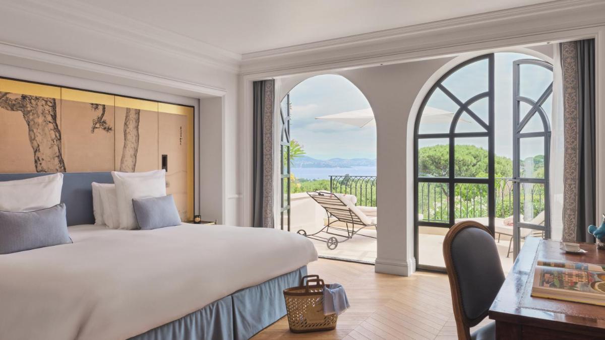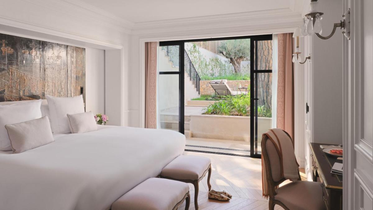Le design intérieur est un chef-d'œuvre d'opulence et d'histoire, avec des décorations rappelant les fastes des palais arabes et l'élégance française. Les chambres et suites sont luxueusement aménagées, avec des tissus précieux et un mobilier sur mesure, dotées de terrasses ou de jardins privés qui s'ouvrent sur une vue à 360 degrés. L'atmosphère est celle d'un rêve princier sur la Côte d'Azur.