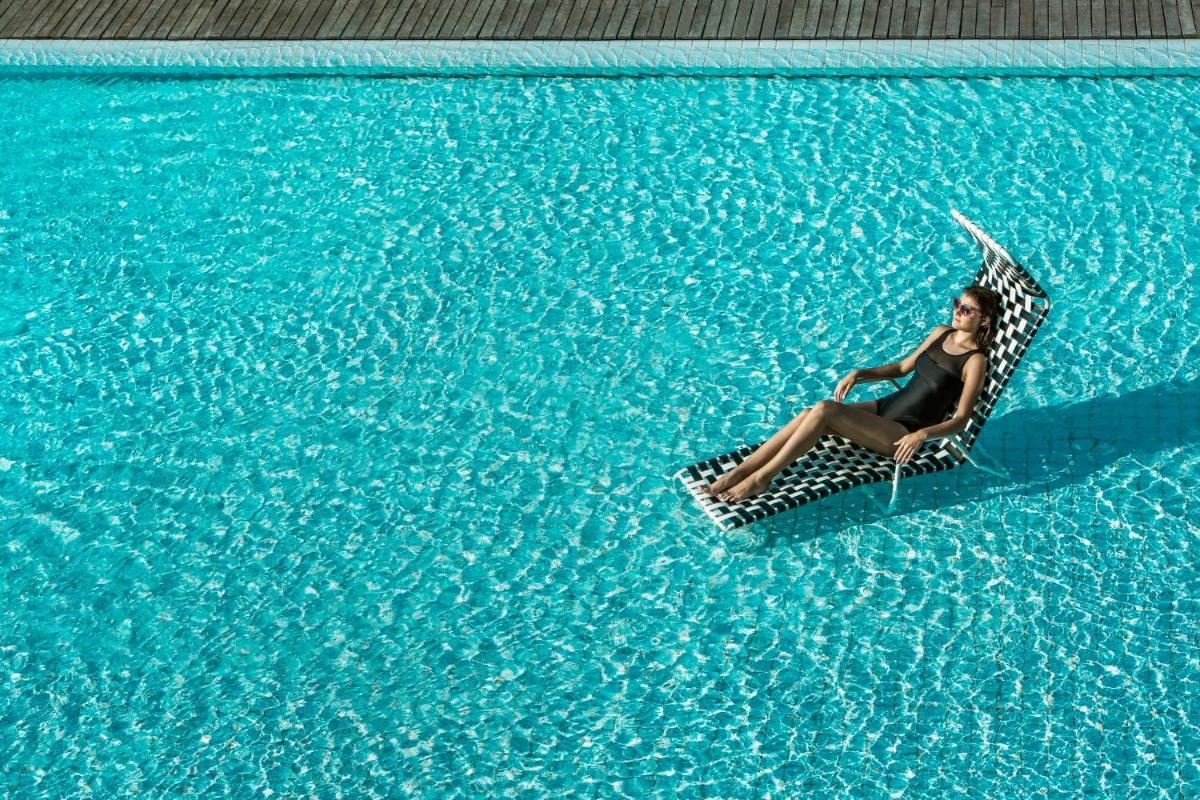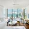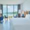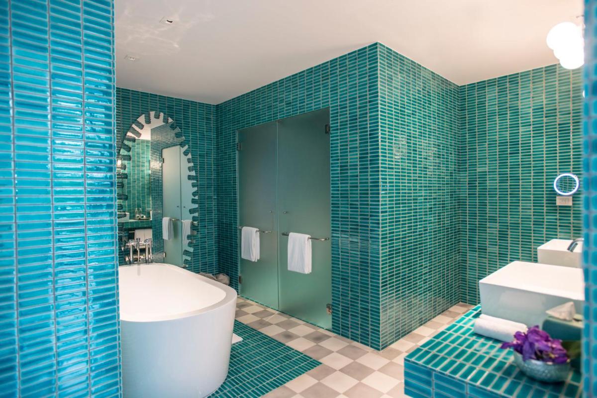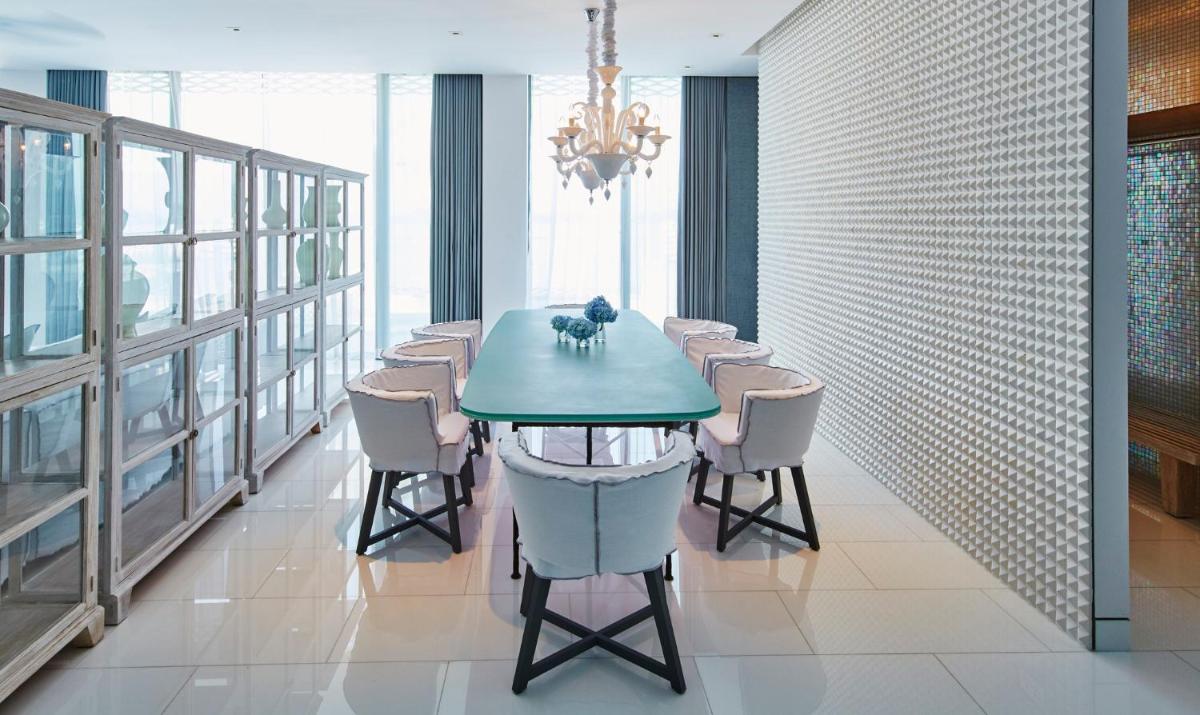Les intérieurs sont une ode au design italien et à l'inspiration thaïlandaise, avec des couleurs vives comme l'orange éclatant contrastant avec des blancs et des bleus profonds. Chaque chambre, suite et villa bénéficie d'une vue spectaculaire et est meublée avec un luxe minimaliste qui met l'accent sur l'espace et la lumière, créant un refuge de pure sérénité.
