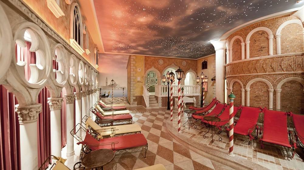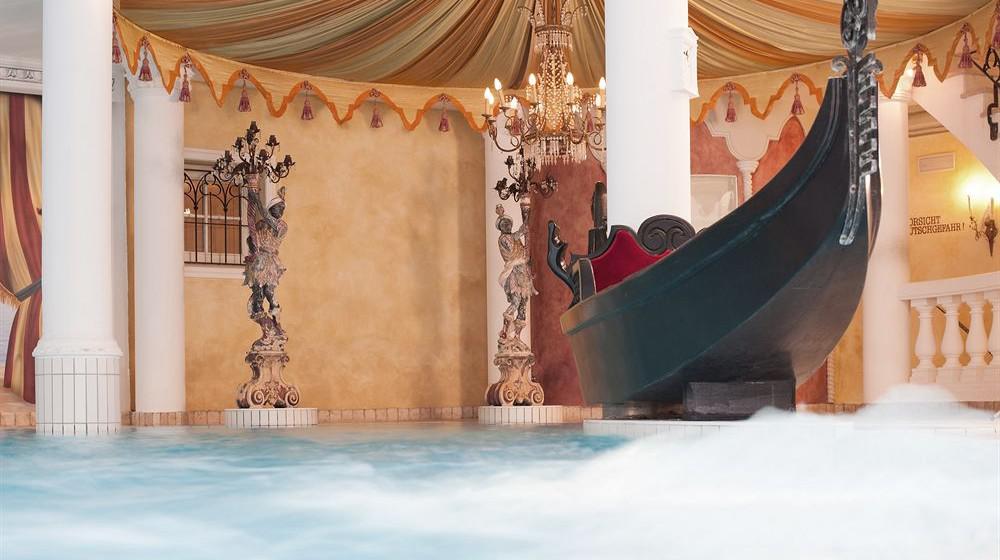 L'espace bien-être 'Venezia Acqua Spa' est unique en son genre, inspiré par le charme de Venise. Il s'étend sur trois étages et offre une expérience sensorielle complète avec divers saunas, bains de vapeur et bains à remous. La piscine intérieure est un joyau architectural, et l'offre de traitements va des rituels alpins aux rituels exotiques, garantissant une relaxation maximale.
