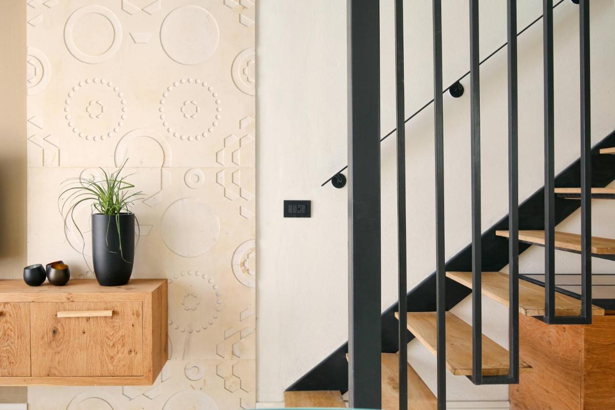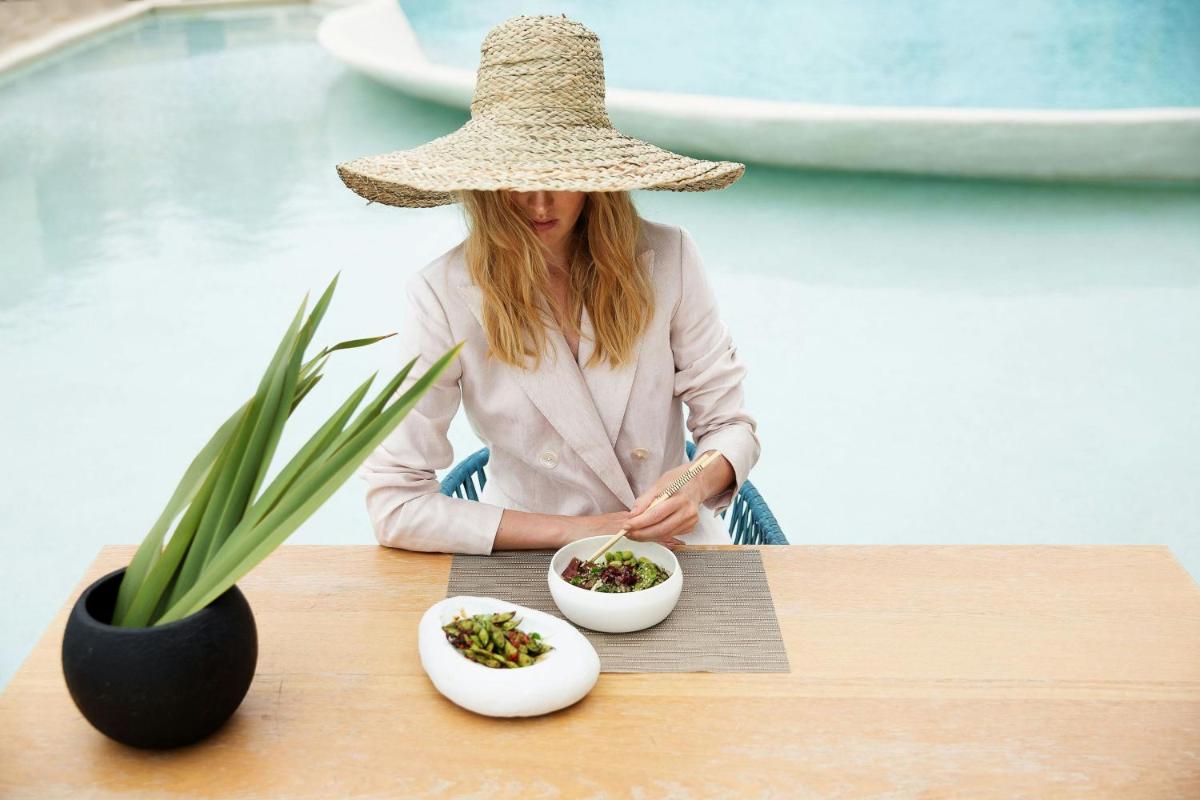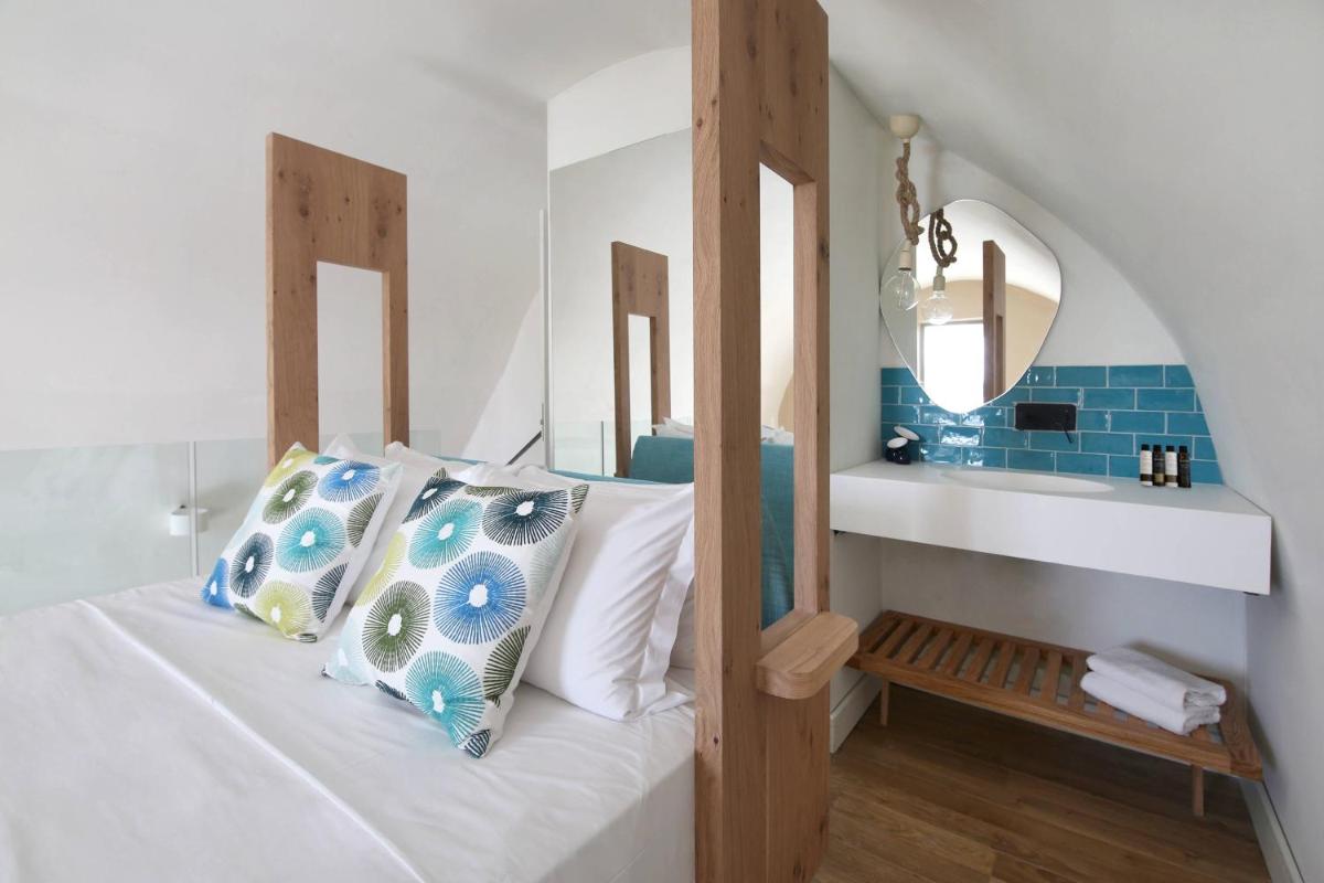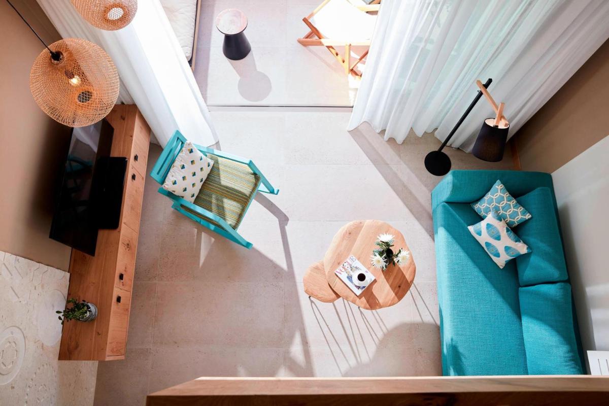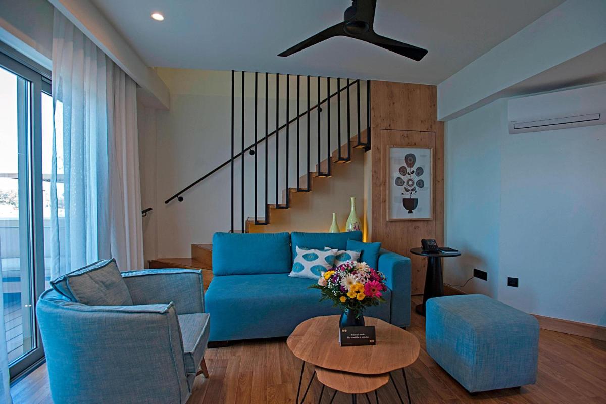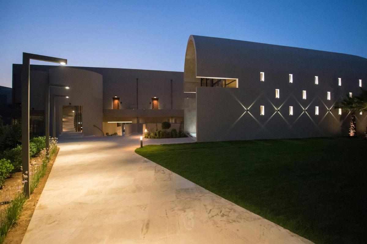 Le design se distingue par des lignes épurées, du béton apparent, du bois naturel et une palette de couleurs neutres qui reflète le sable et la mer crétoise. Presque toutes les chambres et suites disposent de piscines ou de bains à remous privés, créant un refuge intime avec vue sur la Méditerranée, parfait pour les couples.