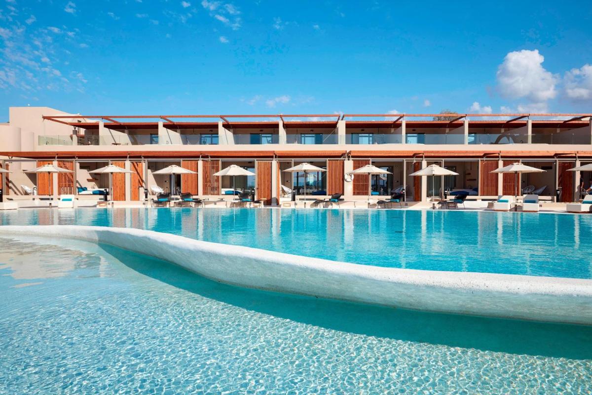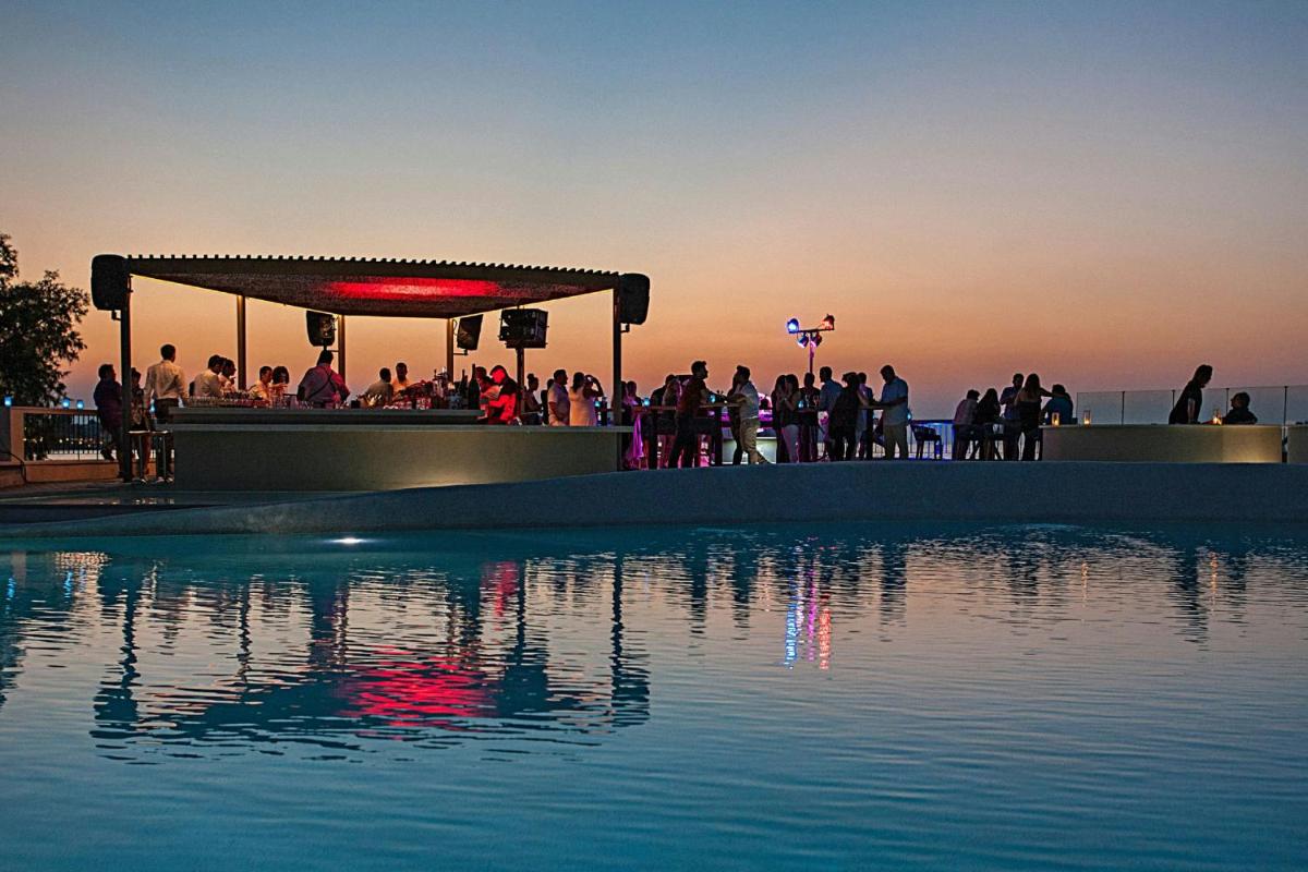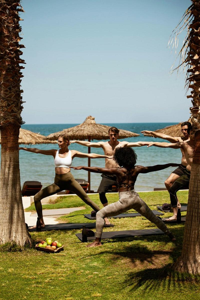 Le complexe dispose de quatre piscines distinctes, chacune avec une atmosphère unique, s'étendant vers la mer. L'accès direct à la plage de sable d'Agioi Apostoloi permet aux hôtes d'alterner facilement entre la détente au bord de la mer et l'animation sophistiquée des piscines et des bars à thème.