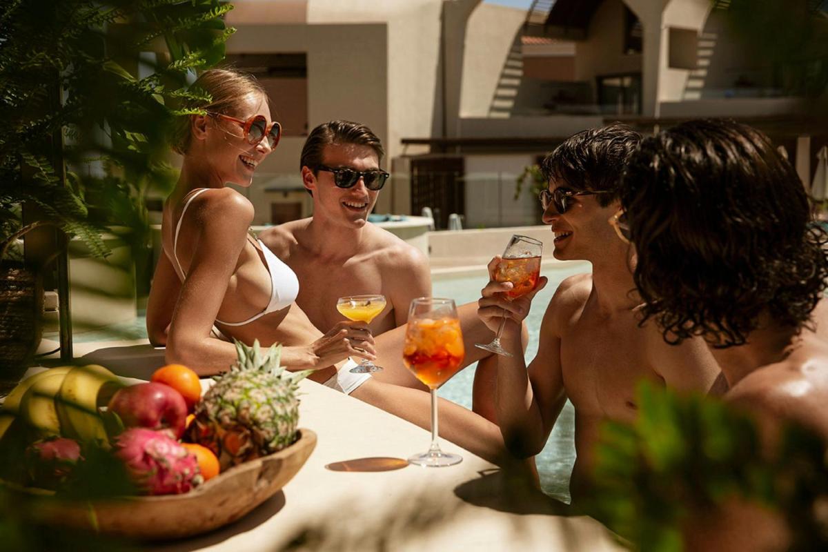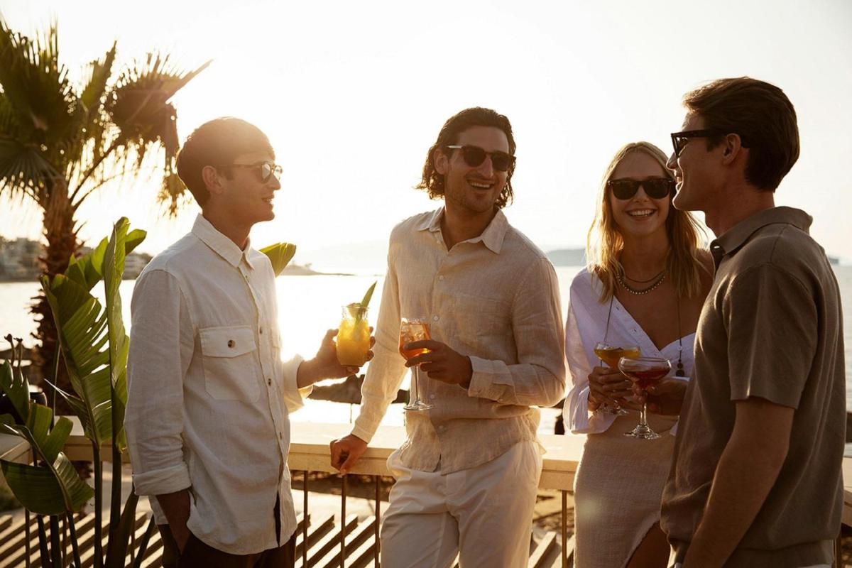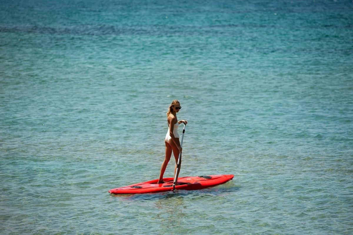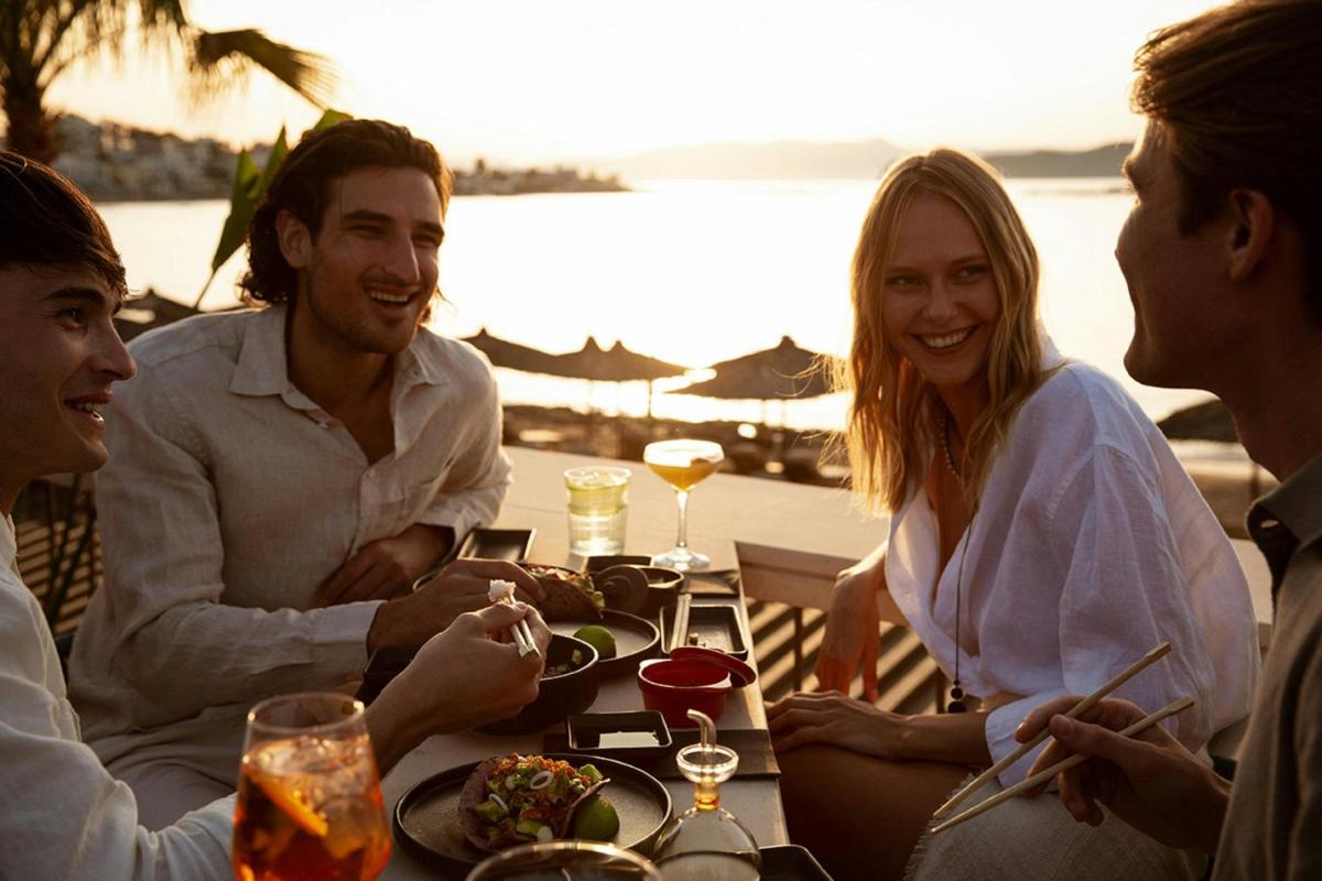 Le complexe dispose de quatre piscines distinctes, chacune avec une atmosphère unique, s'étendant vers la mer. L'accès direct à la plage de sable d'Agioi Apostoloi permet aux hôtes d'alterner facilement entre la détente au bord de la mer et l'animation sophistiquée des piscines et des bars à thème.