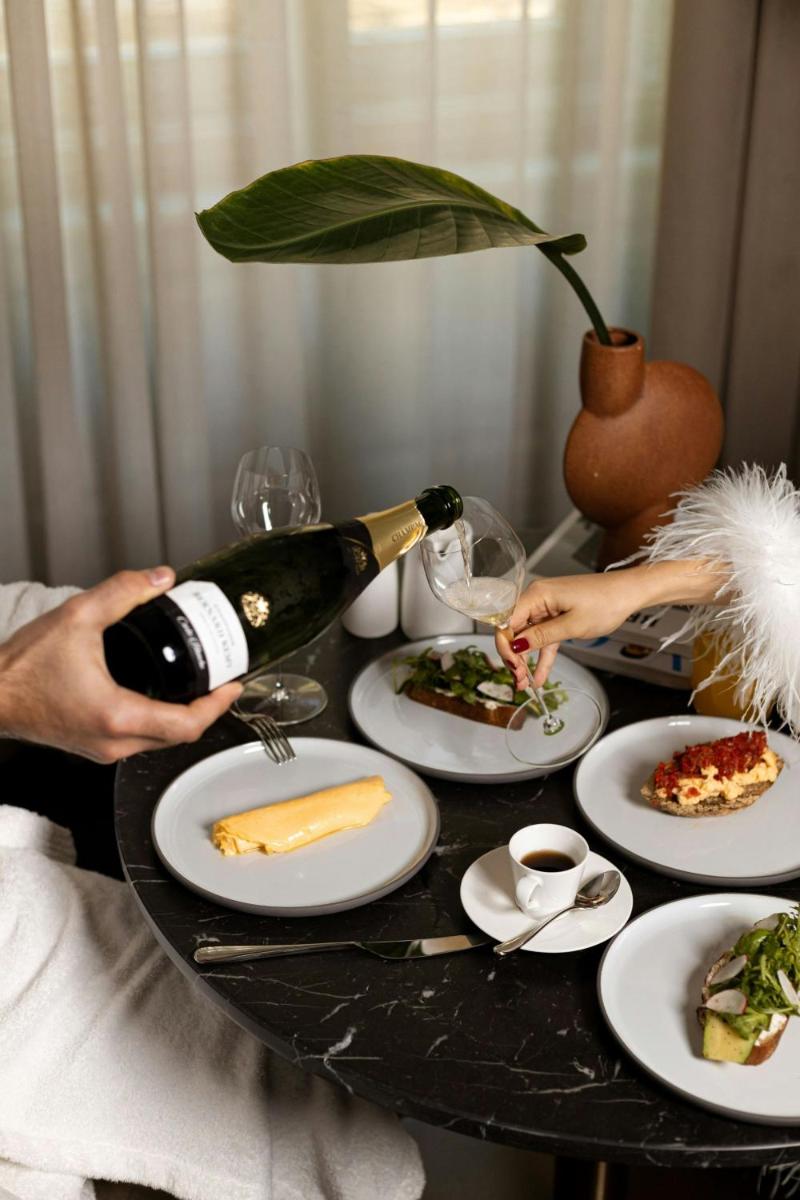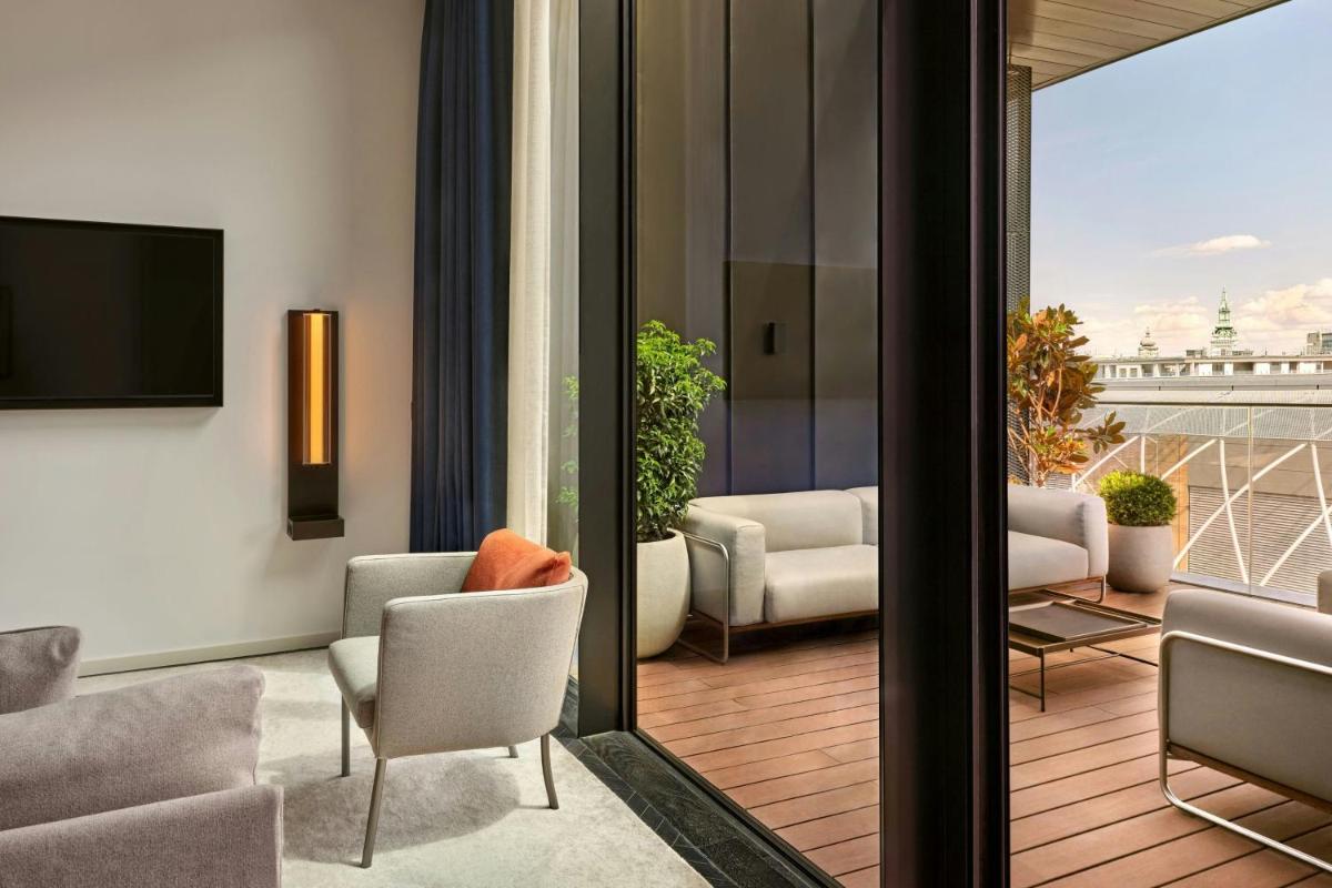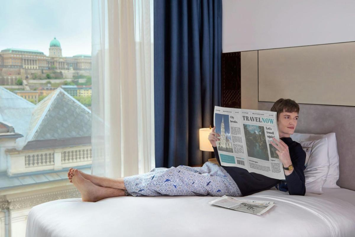 Les chambres et suites sont conçues pour refléter l'élégance intemporelle, avec un équilibre entre confort contemporain et références historiques discrètes. L'ameublement est luxueux, avec des tissus riches et des finitions en marbre. De nombreux logements offrent des vues spectaculaires sur la ville, permettant aux hôtes de se sentir immergés dans la vie urbaine animée de Budapest.