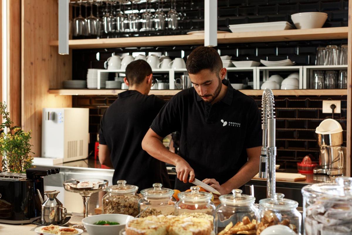 Buffet sucré/salé avec amande d’Avola, miel des Iblei, ricotta fraîche, fruits de saison et pâtisseries traditionnelles. Bonnes adresses de restaurants et bars à vin le long du Corso.