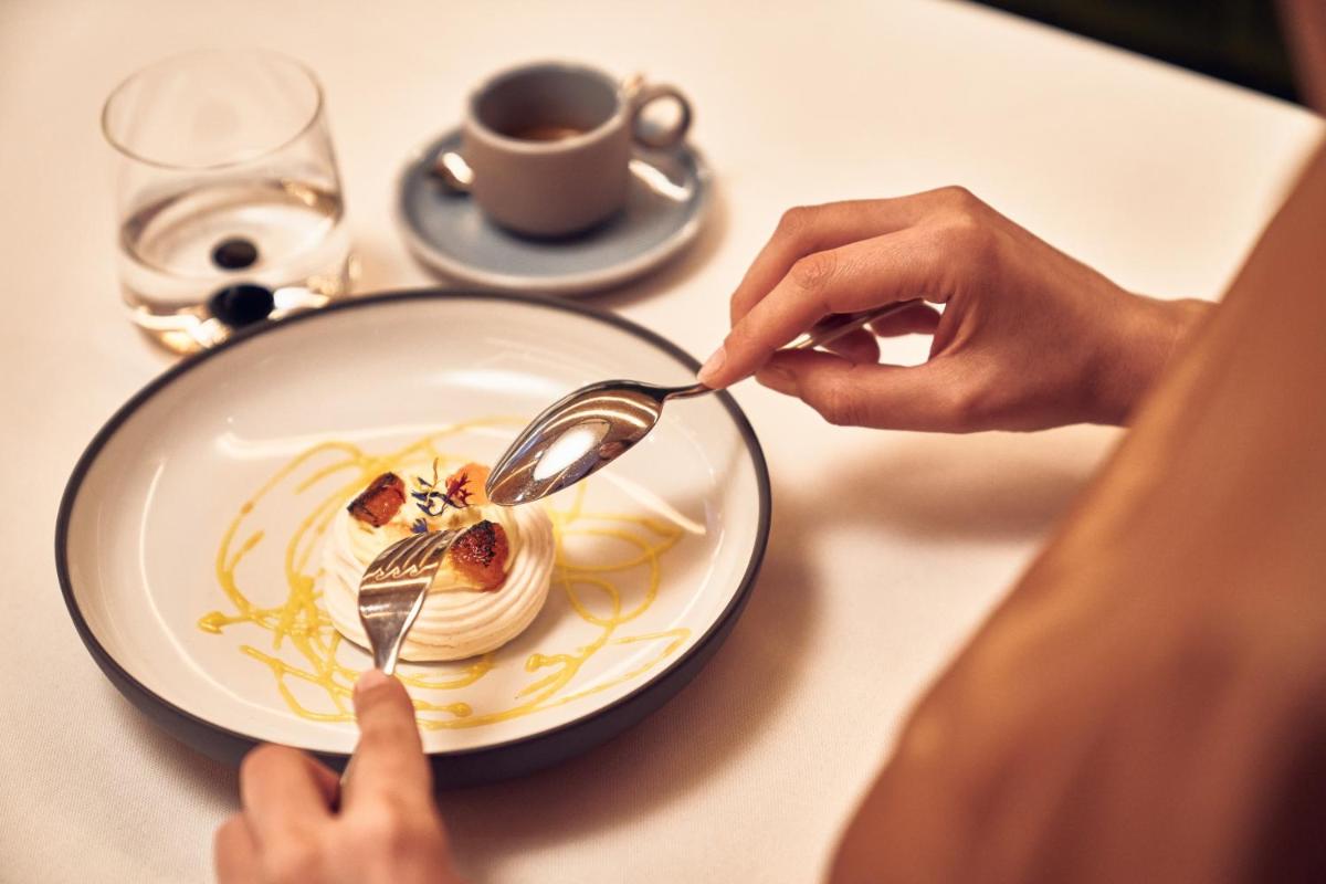 L'offre gastronomique est basée sur le concept "7Summit Slow Food", proposant des plats élaborés avec des produits locaux et des inspirations culinaires des sept plus hauts sommets du monde. La formule de base est la Demi-Pension 7Summits, qui comprend le copieux Petit-déjeuner Active Mountain et le dîner thématique, souvent servi dans un environnement dynamique avec Open Kitchen (cuisine ouverte). Les clients peuvent également se détendre à l'On The Rocks Bar. Les élégantes chambres et suites (35-55 m²), également classées selon les quatre saisons, offrent un confort maximal avec parquet, balcon/terrasse, dressing et équipement d'entraînement.