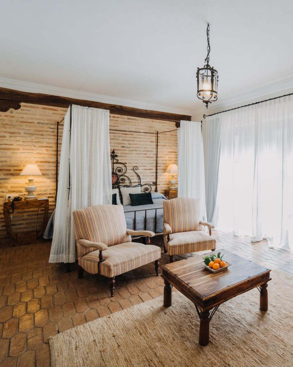 L'architecture de la Finca combine le design classique andalou avec des éléments rustiques et historiques, tels que des plafonds avec poutres en bois et des murs en briques apparentes dans certaines chambres. Les intérieurs sont décorés dans un style traditionnel mais élégant, créant une atmosphère chaleureuse et accueillante. Les cours intérieures, les fontaines et les salons spacieux conservent le caractère original de l'ancien domaine, offrant des espaces communs pleins de charme.