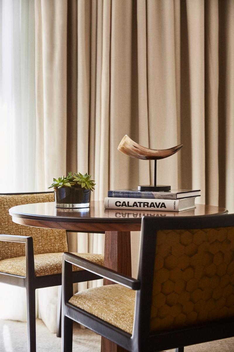 L'hôtel occupe l'ancien siège de plusieurs banques, conservant et restaurant des éléments architecturaux originaux tels que des guichets de banque, des vitraux et des colonnes en marbre vert à sommets dorés. Ce design opulent se fond avec l'art contemporain espagnol, créant une ambiance sophistiquée et profondément caractéristique. Les espaces communs, y compris l'impressionnant lobby 'El Patio', reflètent une grandeur intemporelle qui célèbre le patrimoine culturel espagnol.
