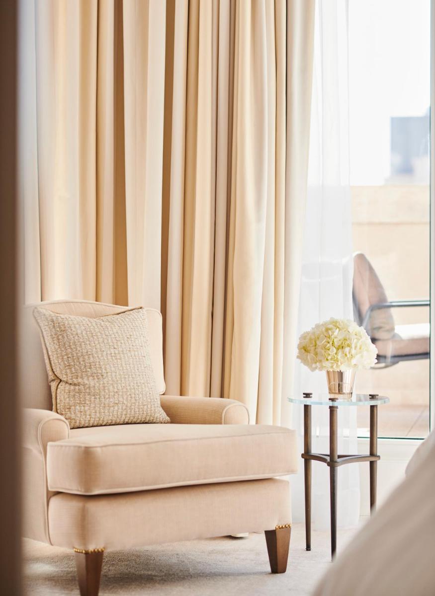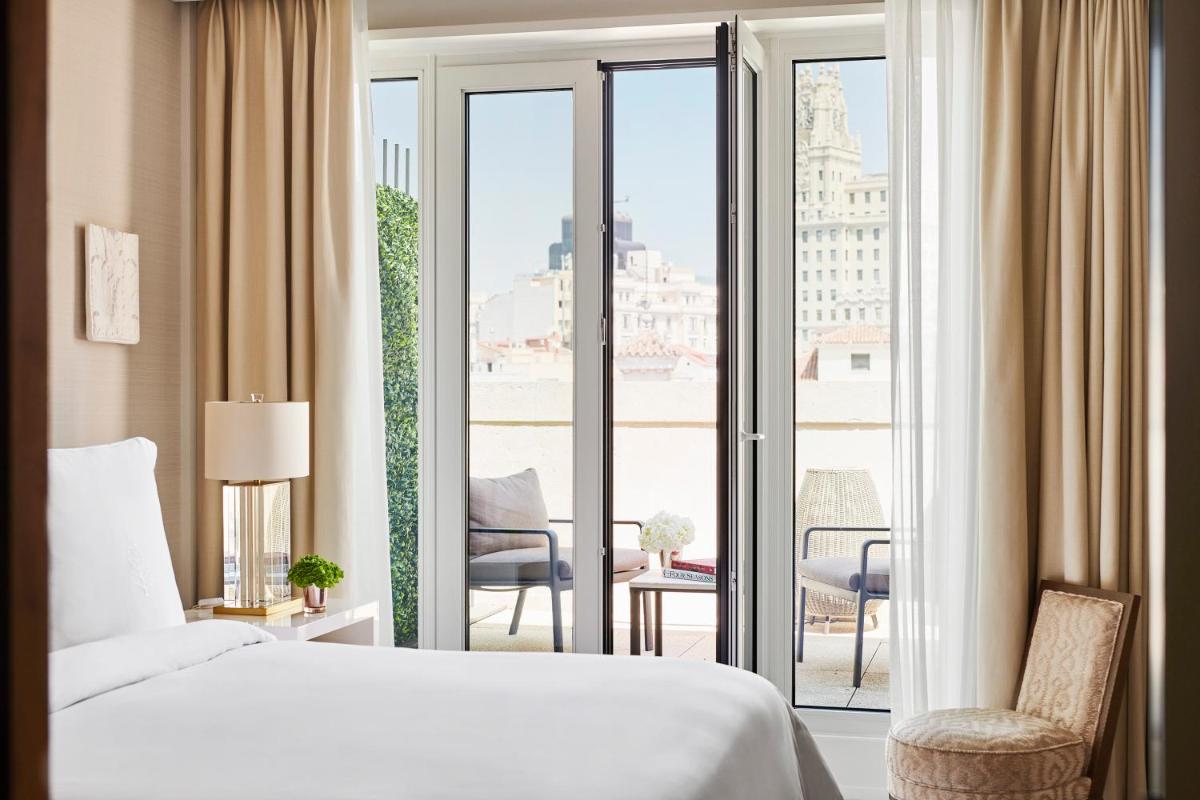 Les 200 chambres et suites sont parmi les plus grandes et les plus luxueuses de la capitale, caractérisées par un mobilier classique mais frais, des tissus somptueux et une technologie de pointe. Beaucoup offrent des terrasses privées ou des balcons à la française ('Juliet Balcony') donnant sur la vie trépidante de Madrid. La Suite Royale, avec ses 400 m², représente le summum du luxe résidentiel, offrant une intimité et un espace inégalés.