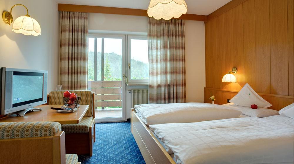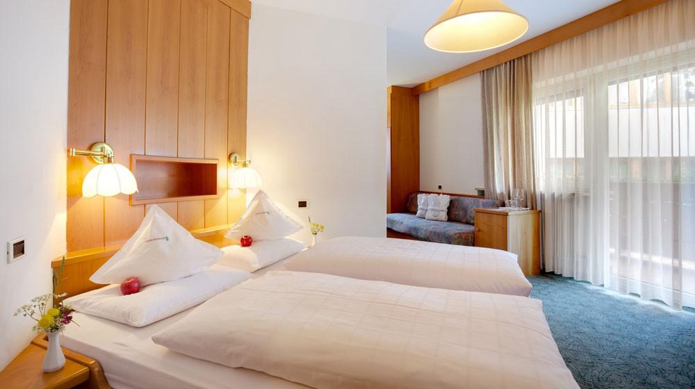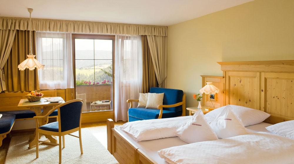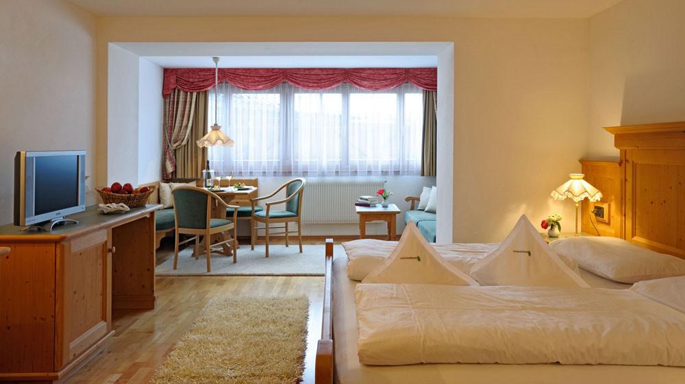 Le Resort propose diverses catégories de chambres et de suites, des chambres confortables Standard Latemar aux spacieuses Turmsuites, idéales pour les familles. Les hébergements, nombreux avec balcon, sont dotés d'un design élégant avec parquet et matériaux naturels. Le confort est assuré par des équipements tels que le sac bien-être avec peignoir et serviettes de sauna, ainsi qu'un service de conciergerie numérique.