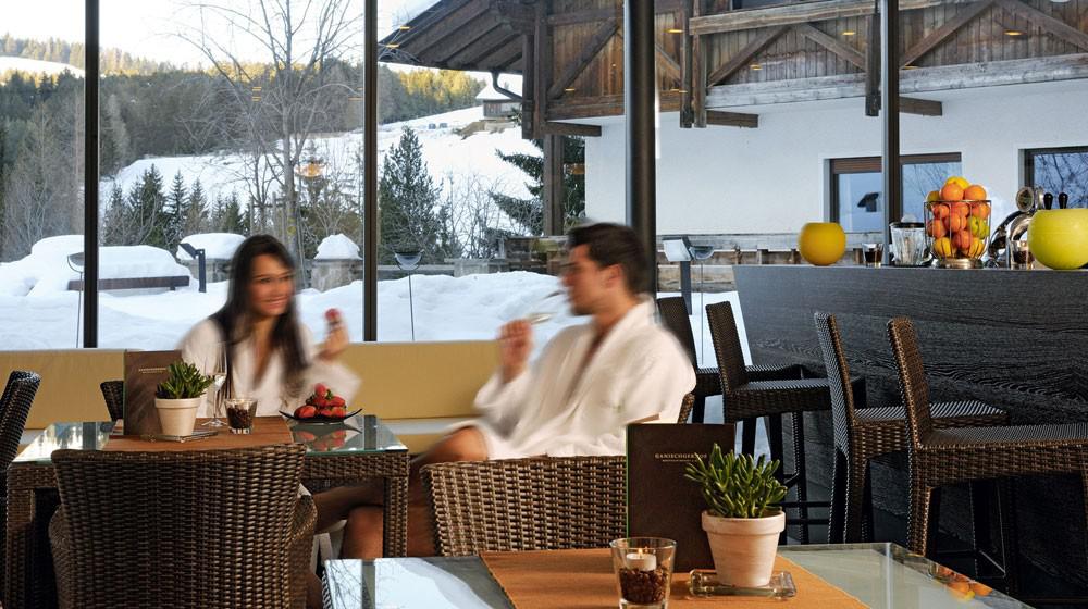 La grande Ganis SPA s'étend sur environ 1 000 m² et est le cœur du bien-être. Elle comprend une piscine intérieure, un jacuzzi, différents saunas (panoramiques), un bain turc, une grotte de glace et une tour de relaxation accueillante avec des lits à eau chauffés. L'espace bien-être est complété par 6 salles de soins de beauté et un centre de fitness moderne avec équipement Technogym et vue imprenable sur la nature environnante.