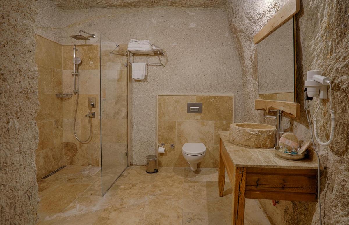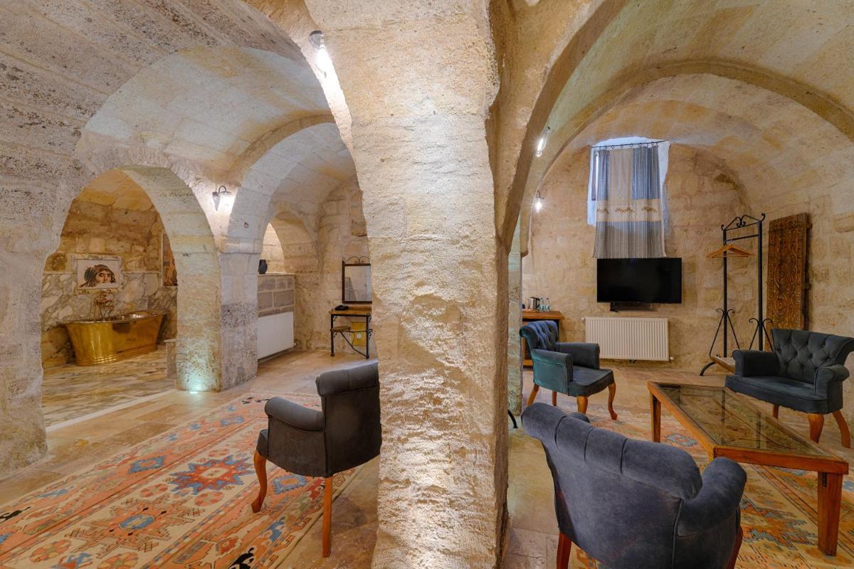 L'hôtel est parsemé de terrasses en pierre d'où se détendre et profiter du panorama environnant, offrant une perspective unique sur la vie et le paysage de Göreme. La décoration est méticuleusement soignée, transformant chaque coin en un délice visuel qui reflète l'histoire et la culture de la Cappadoce, faisant du séjour un véritable voyage sensoriel.