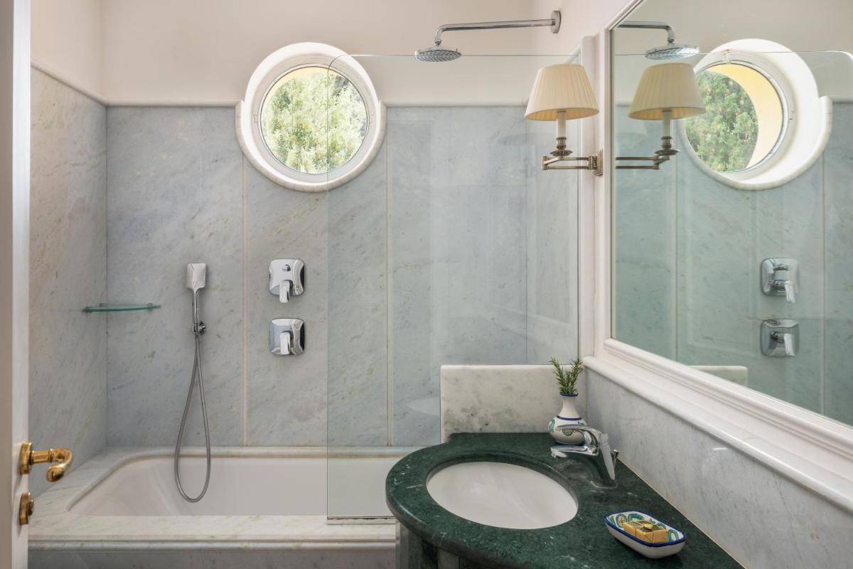 Les 49 chambres et 6 suites sont décorées avec une élégance classique raffinée, du marbre, des sols en majolique et des détails d’époque. La plupart disposent de grands balcons ou terrasses privés offrant la célèbre "vue à 180 degrés", qui s’étend de Punta Campanella au Vésuve. Les hébergements sont équipés de tout le confort moderne pour garantir un séjour de détente maximale.