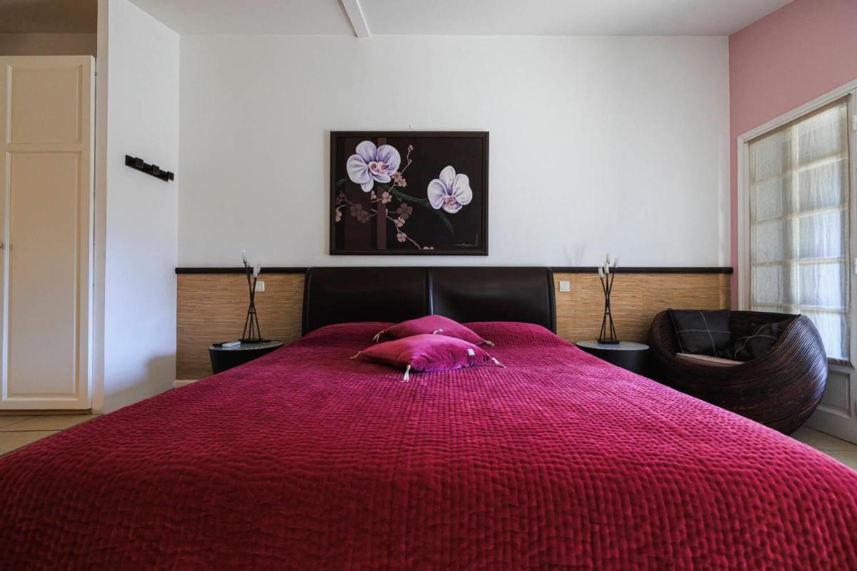 Les chambres sont lumineuses et décorées dans un style méditerranéen chaleureux et simple, avec des sols en terre cuite et des poutres apparentes. Beaucoup offrent une vue splendide sur le jardin ou la piscine. L'atmosphère est celle d'une maison de campagne provençale, garantissant un séjour relaxant et authentique.
