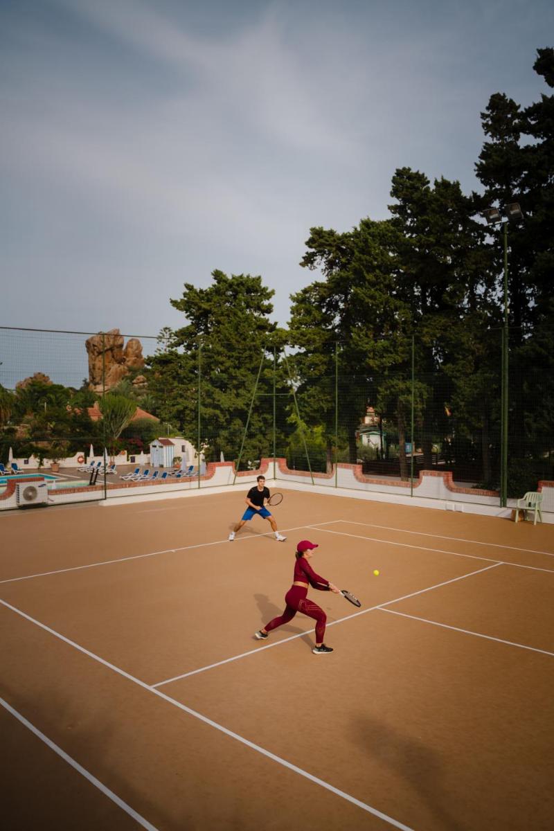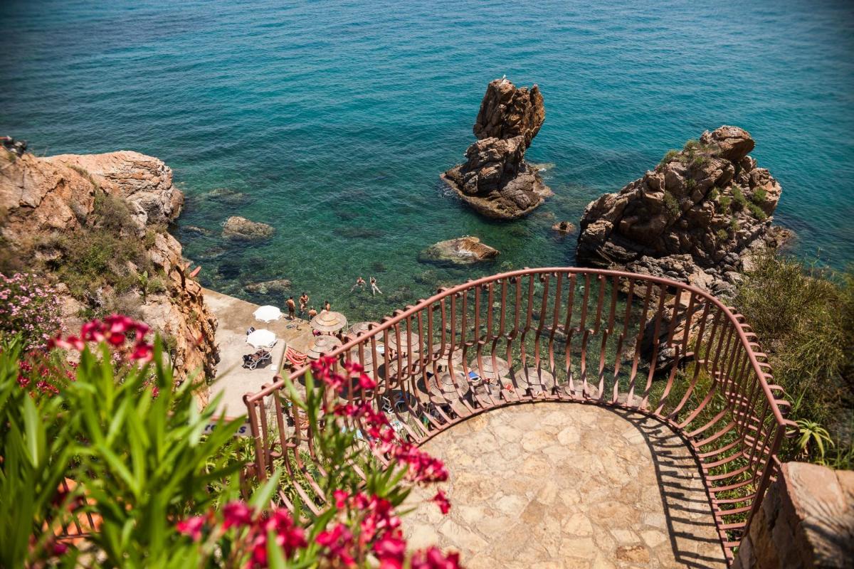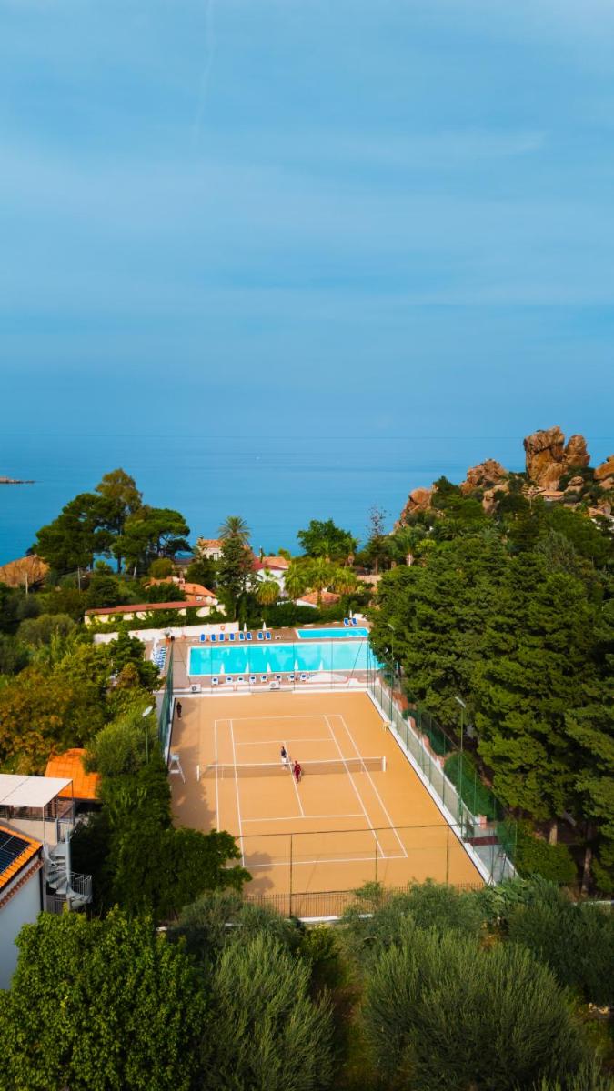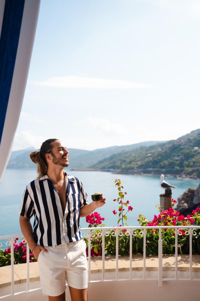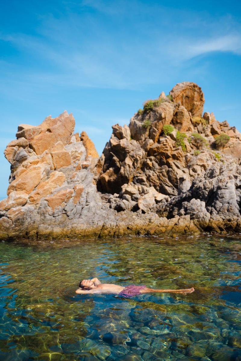 L'architecture de l'hôtel s'intègre parfaitement à la nature méditerranéenne environnante, entourée de jardins luxuriants et de sentiers menant à la mer. Les espaces communs et les chambres sont conçus pour offrir une atmosphère sereine et accueillante. De nombreuses chambres bénéficient de balcons privés avec une vue spectaculaire sur le bleu de la mer, garantissant un réveil inoubliable.