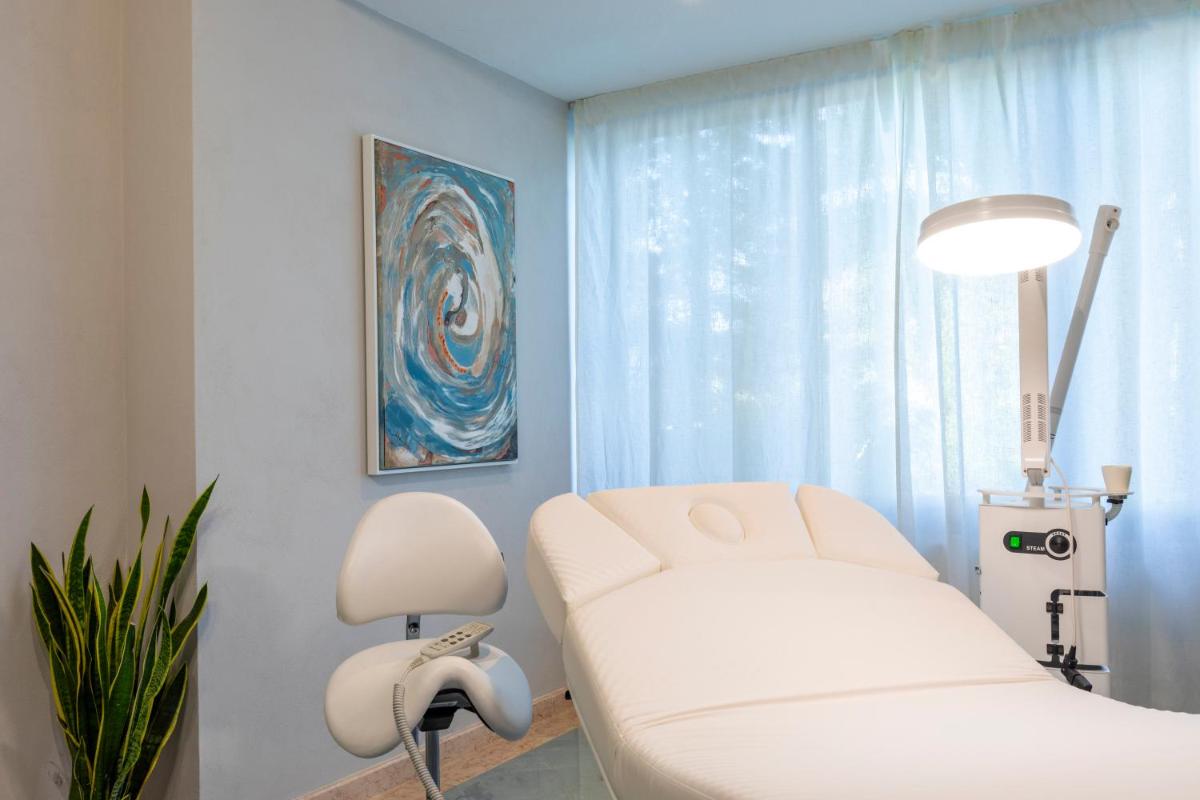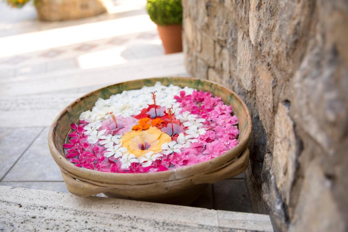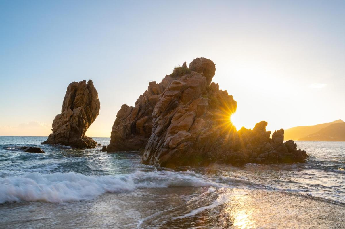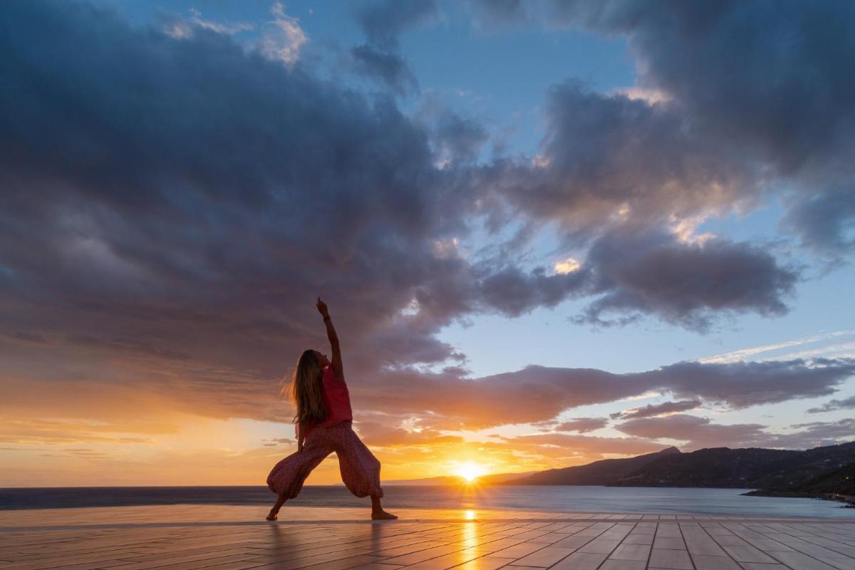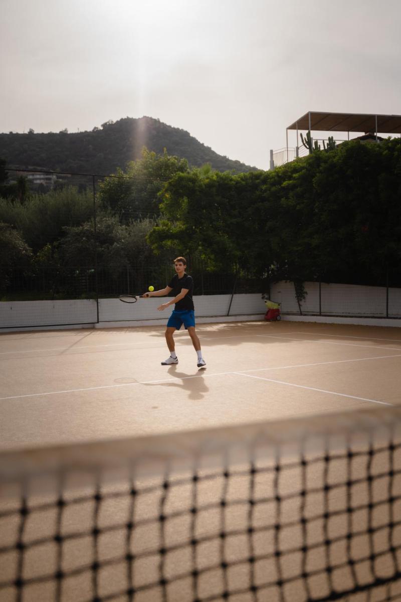 L'architecture de l'hôtel s'intègre parfaitement à la nature méditerranéenne environnante, entourée de jardins luxuriants et de sentiers menant à la mer. Les espaces communs et les chambres sont conçus pour offrir une atmosphère sereine et accueillante. De nombreuses chambres bénéficient de balcons privés avec une vue spectaculaire sur le bleu de la mer, garantissant un réveil inoubliable.