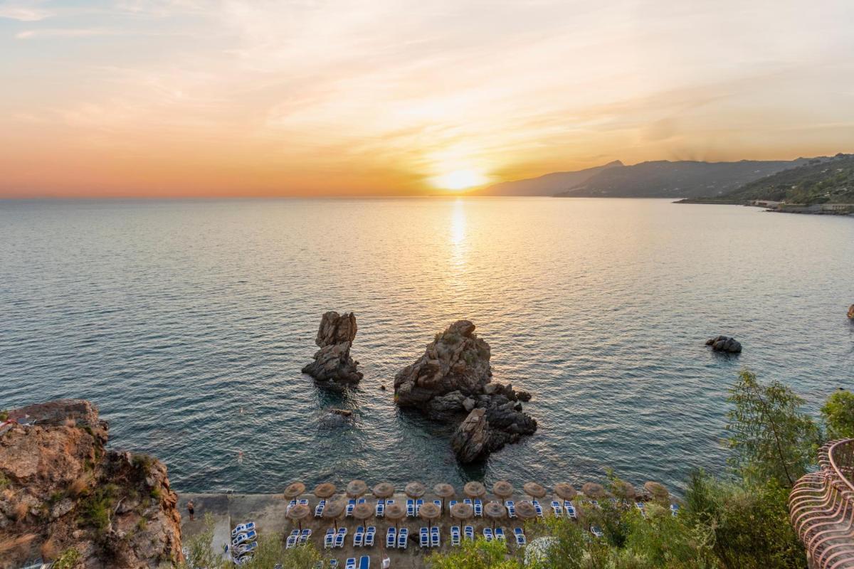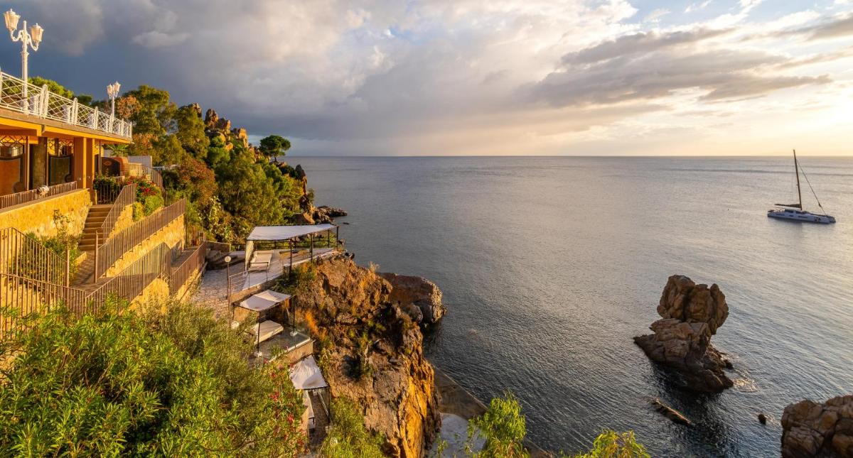 L'Hotel Kalura est une structure hôtelière historique située à Cefalù, célèbre pour sa position panoramique à pic sur la mer et pour l'accès direct à une baie privée avec plage et rochers. Il offre une expérience de vacances qui combine détente, art et culture sicilienne, avec une vue inoubliable sur la Rocca di Cefalù et la mer Tyrrhénienne.
