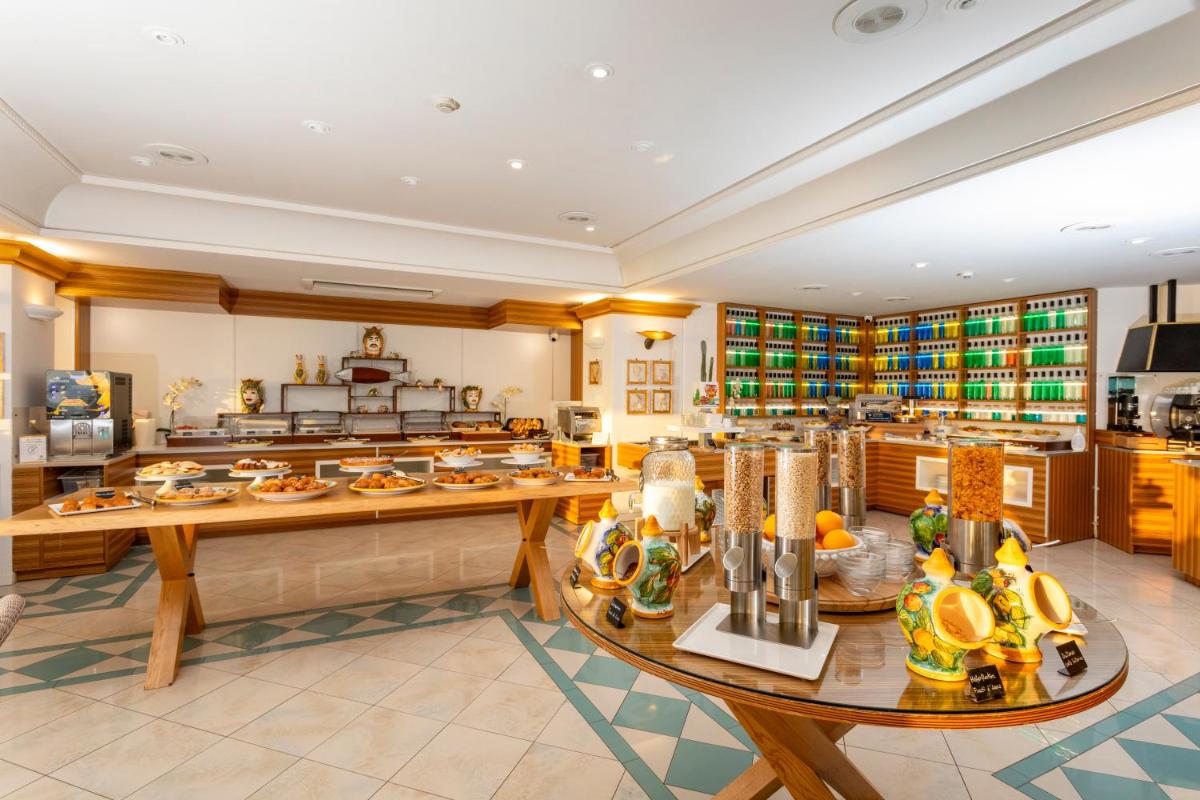 Le restaurant de l'hôtel propose une cuisine sicilienne authentique et méditerranéenne, privilégiant les ingrédients frais et de saison. Le point fort est la terrasse panoramique, où il est possible de déguster les plats typiques et la pêche du jour en profitant d'une vue imprenable au coucher du soleil. Une expérience gastronomique qui est aussi un plaisir pour les yeux.