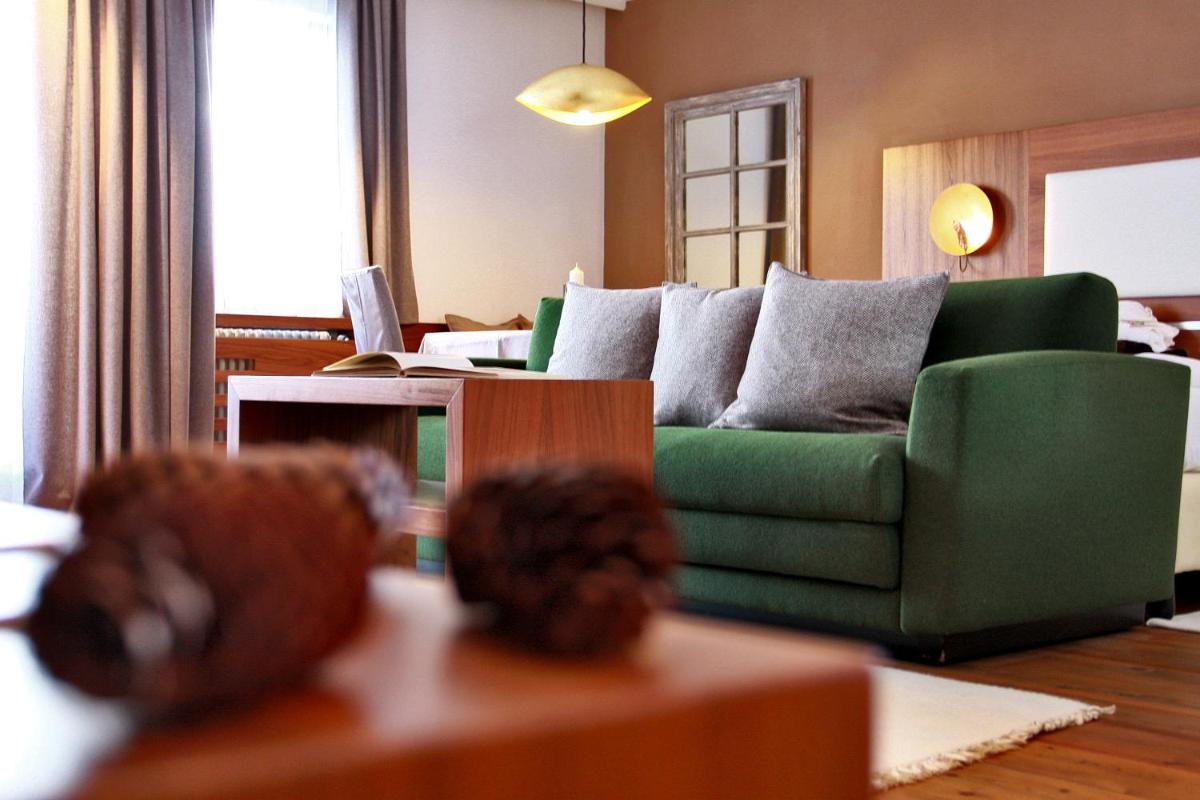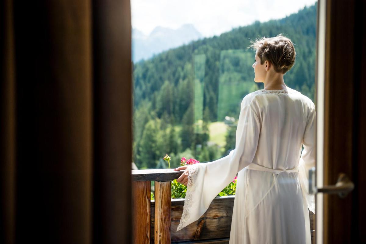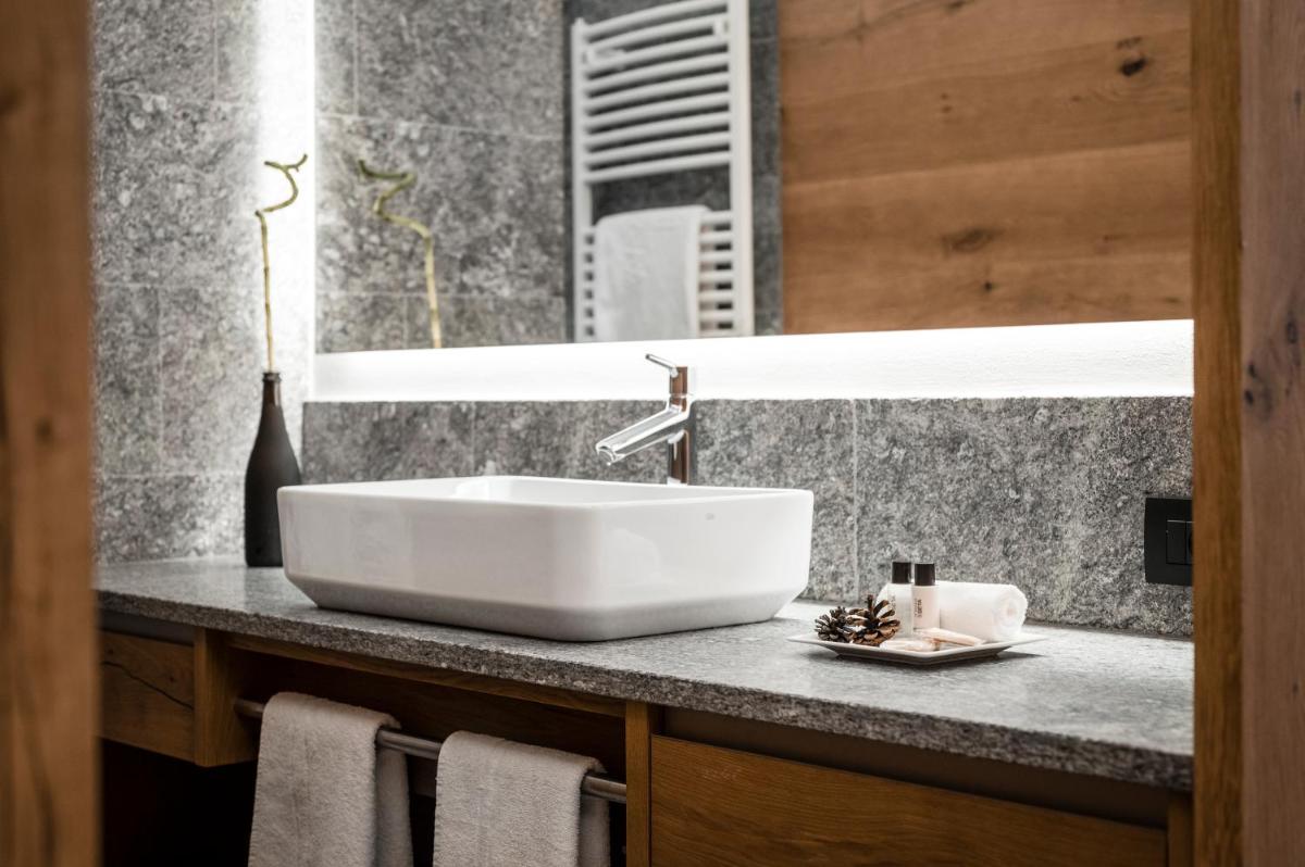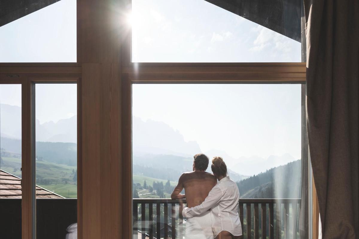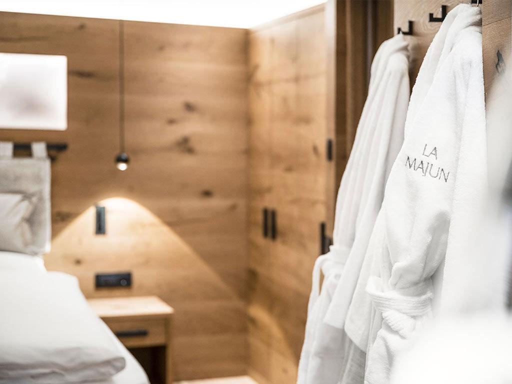Les chambres et Suites spacieuses (y compris Junior Suite, Suite Alpine et Grand Suite) sont meublées dans un style chalet alpin raffiné, caractérisées par des parquets et des matériaux naturels. La plupart des logements disposent d'un balcon privé offrant une vue imprenable sur les imposants sommets des Dolomites, tels que le Groupe Sella et le Piz La Ila. Toutes sont équipées d'une télévision à écran plat, d'un minibar, d'un coffre-fort et d'une salle de bain privée avec des produits sélectionnés. Les clients reçoivent un kit SPA (peignoir, serviette et pantoufles) inclus dans le séjour.