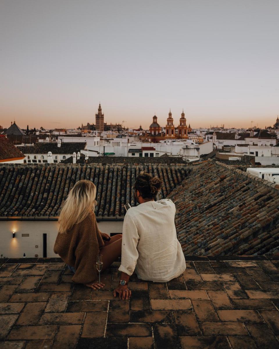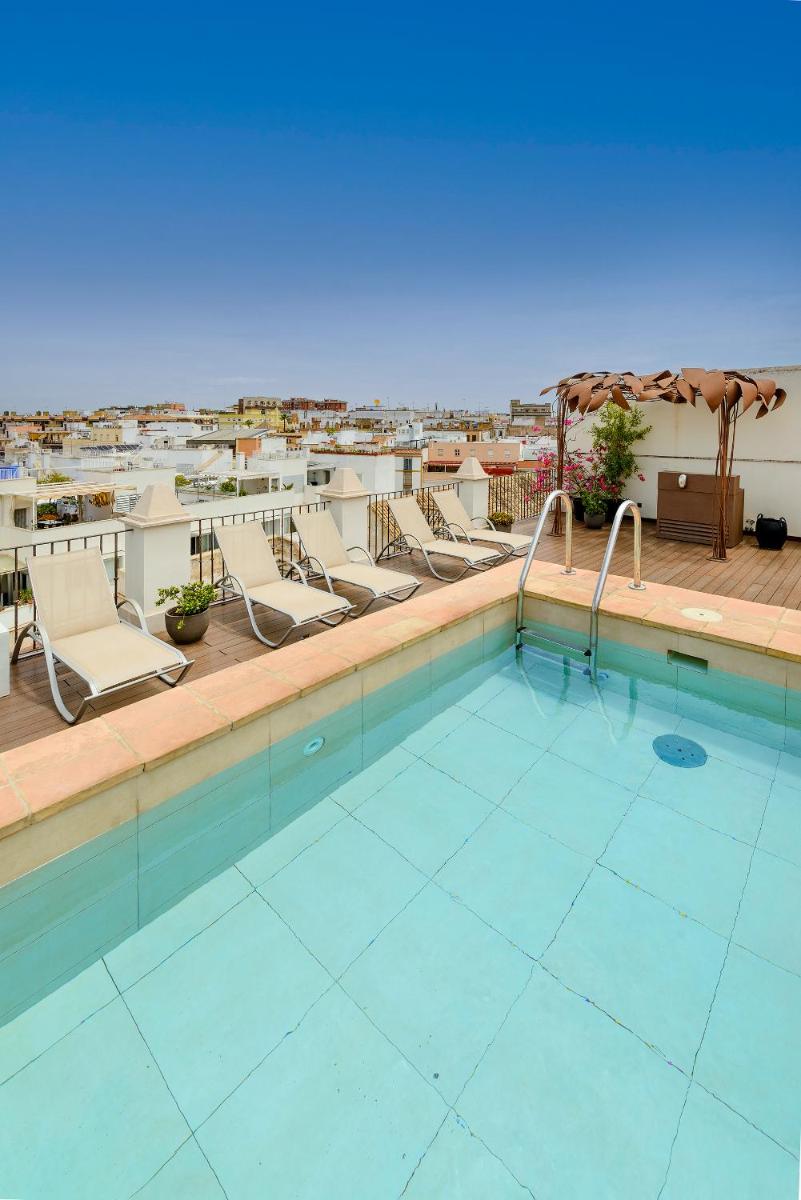 Le palais dispose d'une terrasse sur le toit (rooftop) avec une piscine extérieure (plunge pool) et un solarium, offrant une vue discrète et tranquille sur les toits de Séville. Il possède également une cour avec jardin et un espace Spa et bien-être avec bain turc et soins pour une relaxation maximale.