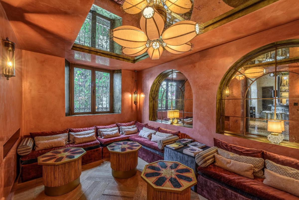 Les chambres et les espaces communs allient avec élégance l'opulence historique à un design contemporain et minimaliste. Les meubles sont de designer, les lignes épurées se combinent avec les sols en marbre et les détails en bois d'époque. Ce contraste crée une atmosphère de luxe raffiné et moderne qui est la marque de fabrique du groupe CoolRooms.