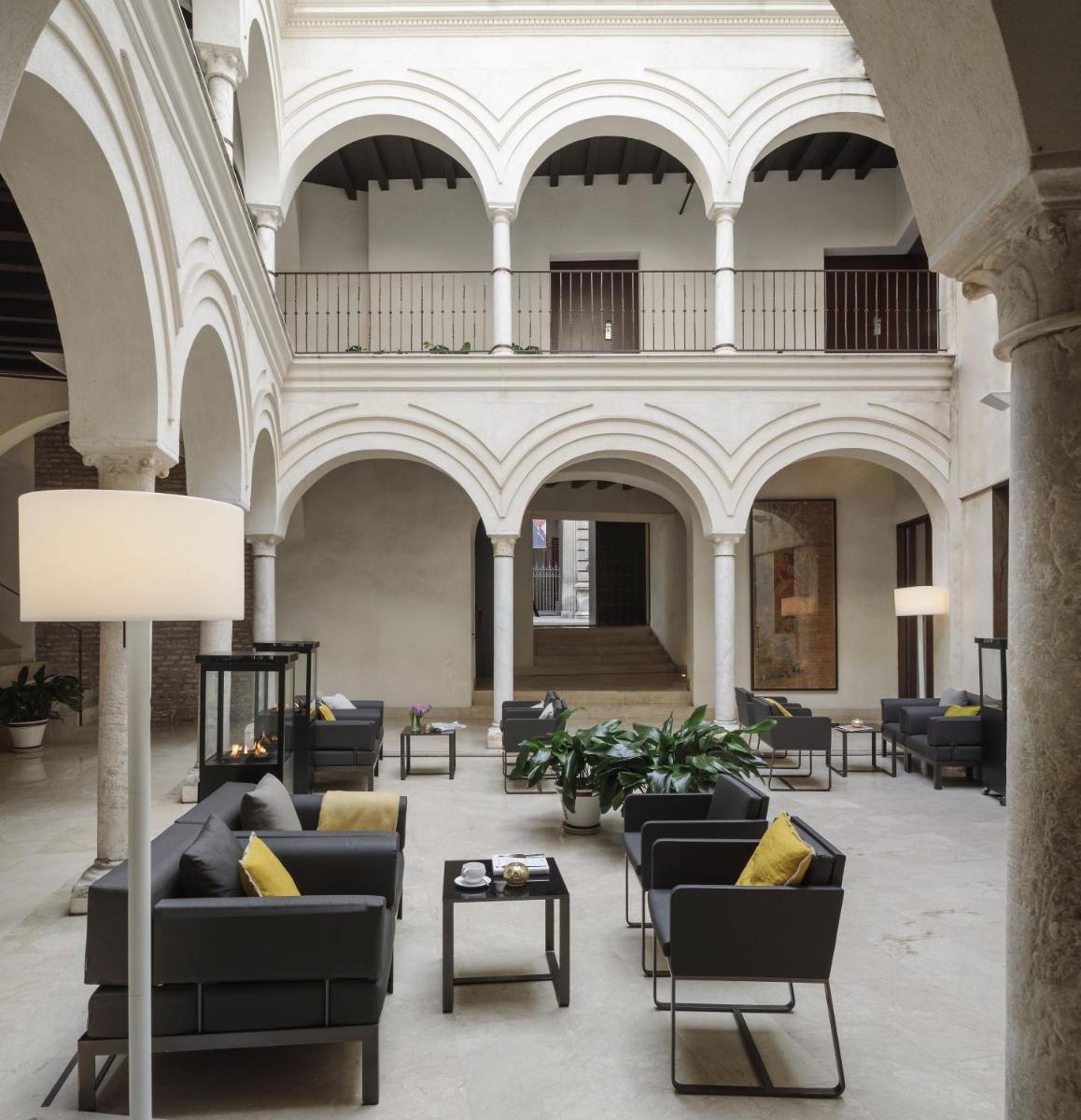 L'architecture est dominée par le traditionnel patio intérieur andalou, avec des arcades et des colonnes, qui sert de cœur à l'hôtel. Les chambres combinent des éléments traditionnels sévillans avec un design moderne et élégant.
