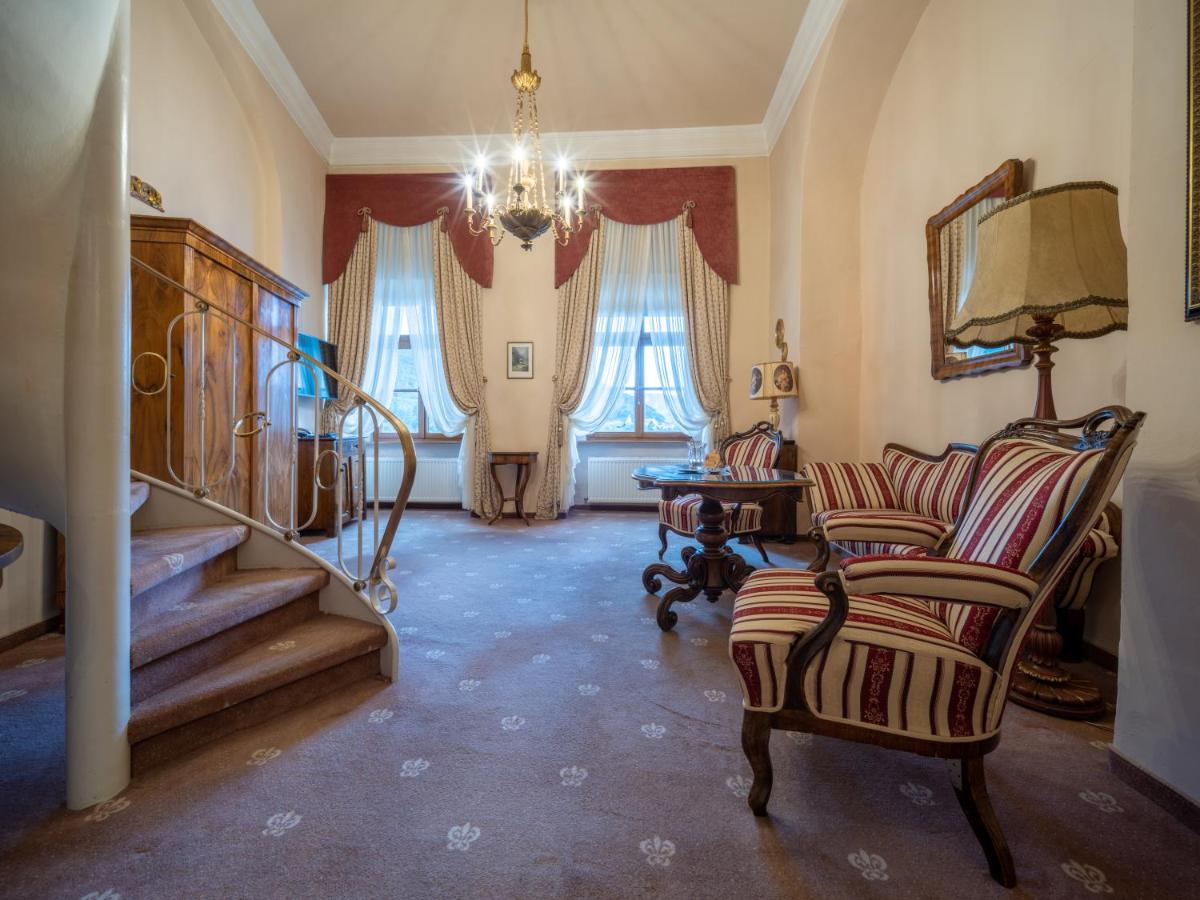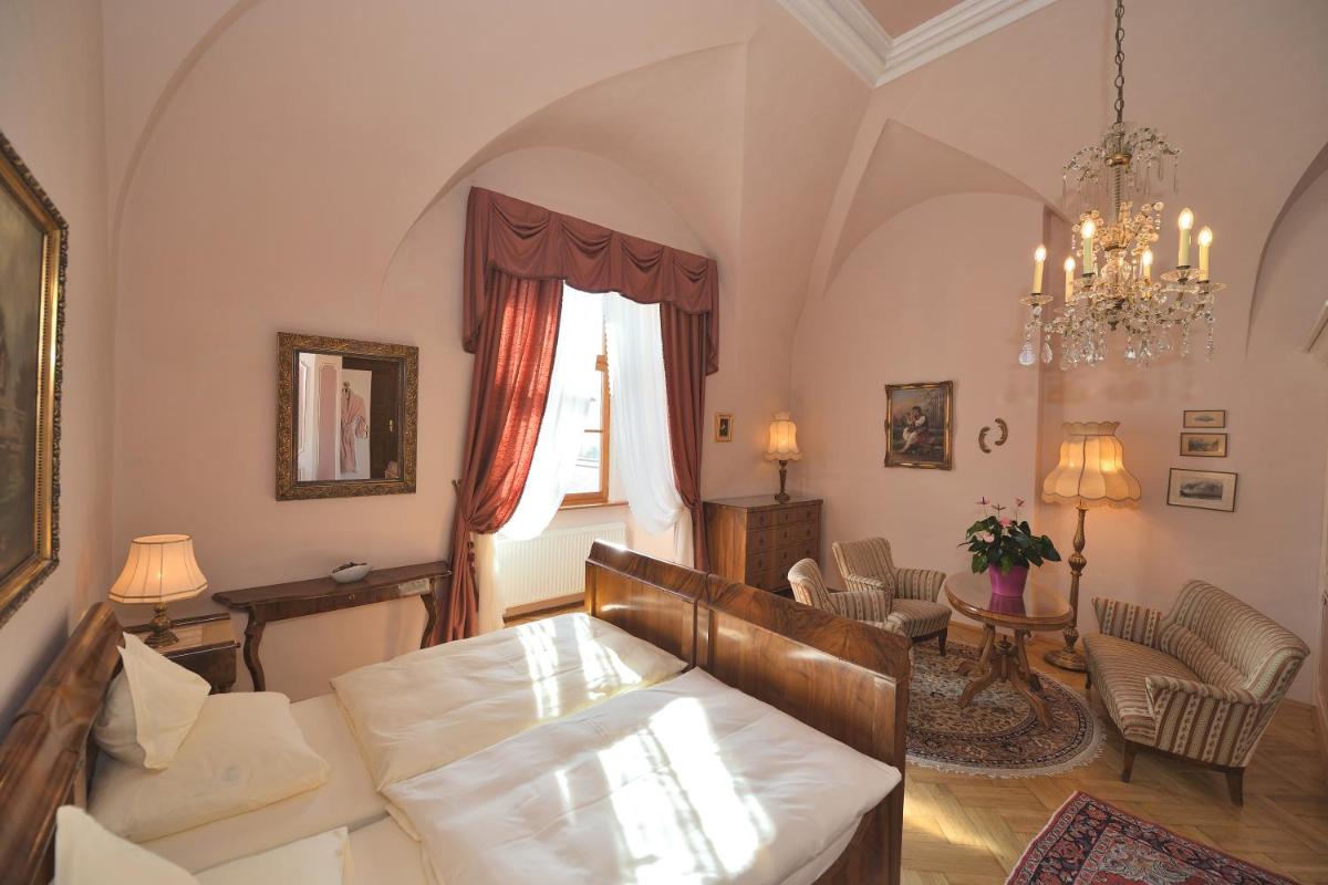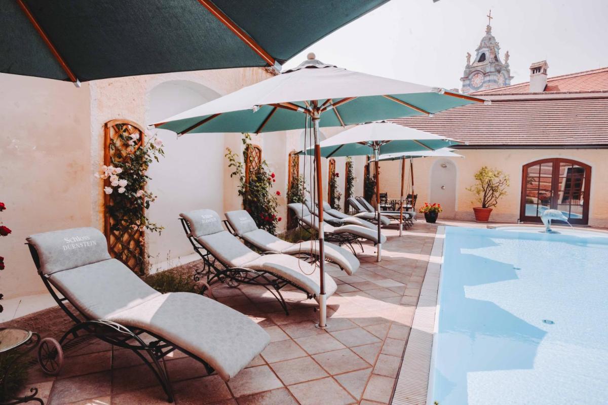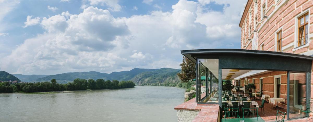 L'hôtel bénéficie d'intérieurs qui reflètent son histoire baroque et noble. Les chambres et suites sont meublées de meubles d'époque, de tissus précieux et d'un luxe classique qui évoque l'ère des Habsbourg. De nombreuses chambres offrent une terrasse ou un balcon privé avec vue directe sur le Danube, les vignobles ou les ruines du château de Richard Cœur de Lion.