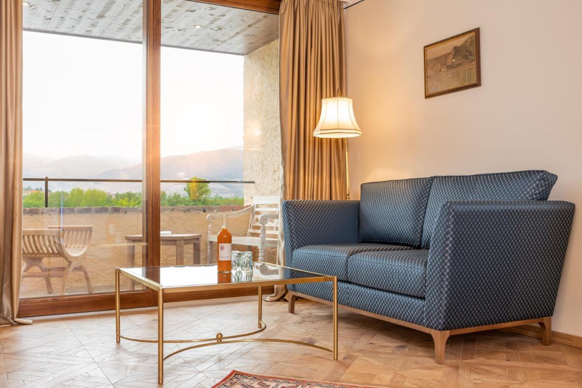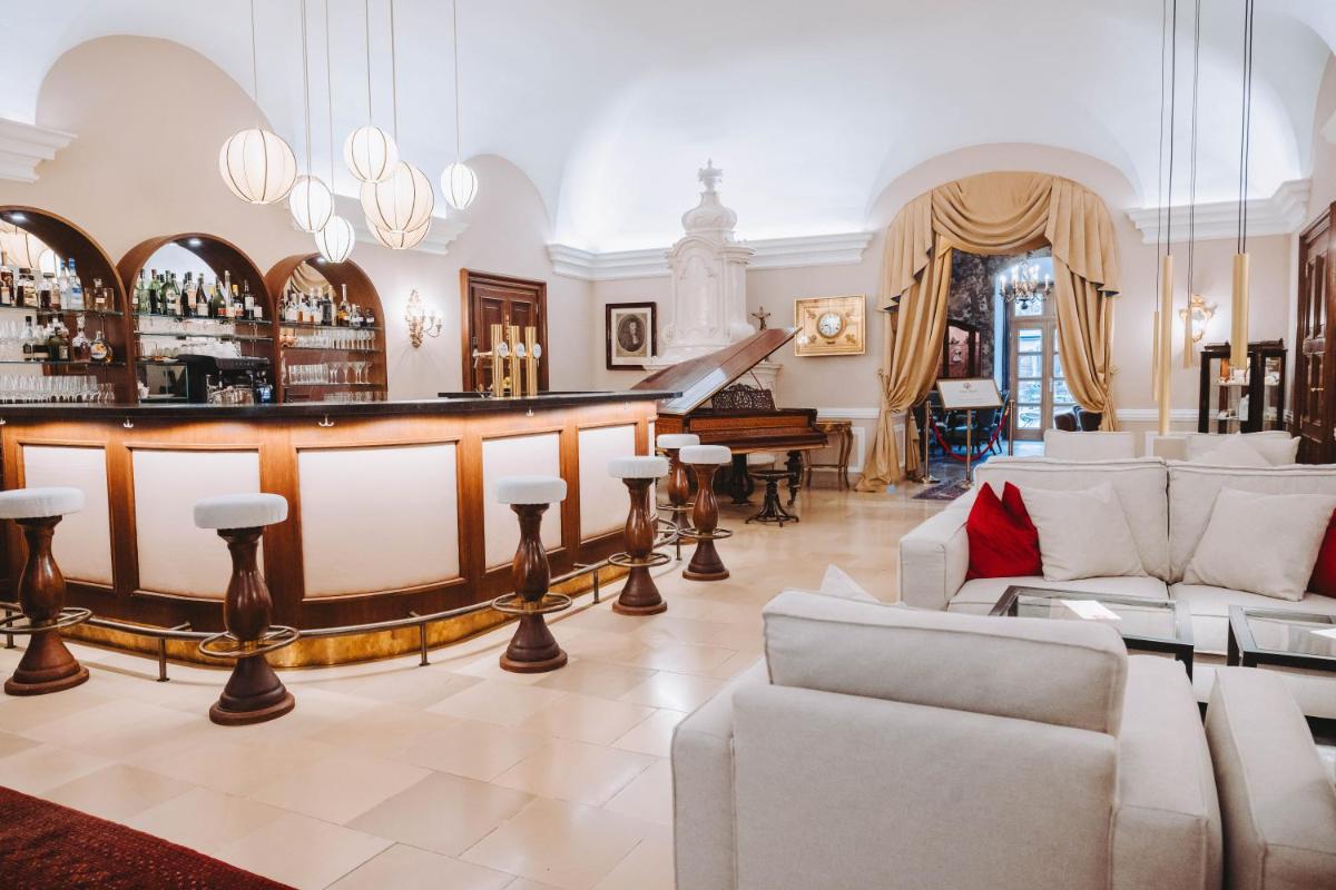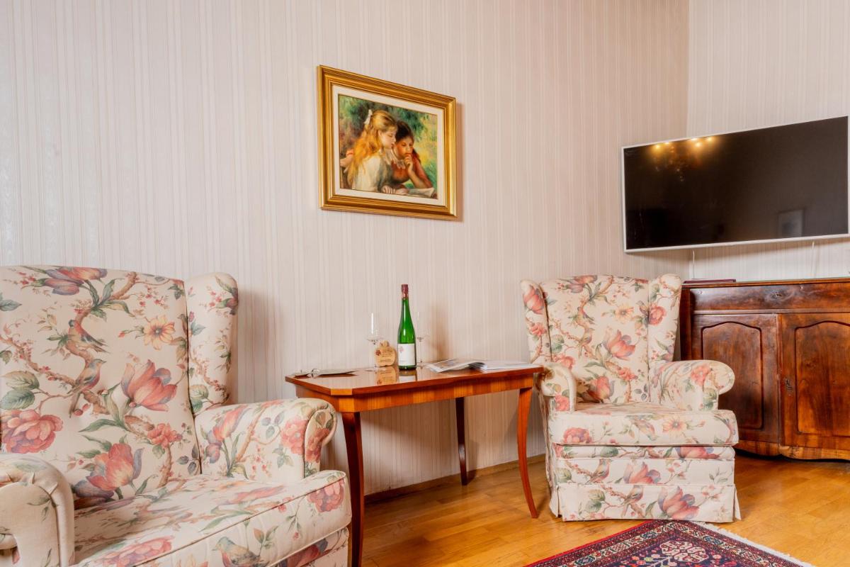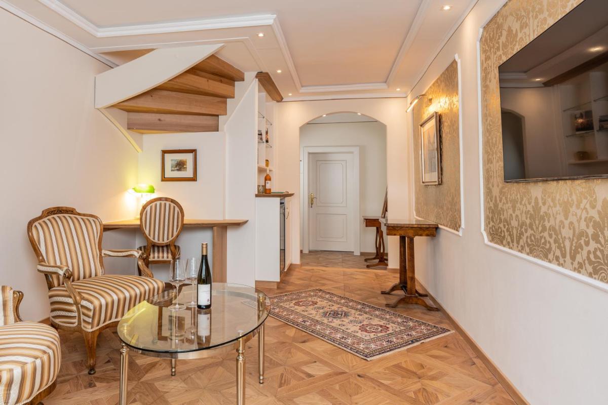 L'hôtel bénéficie d'intérieurs qui reflètent son histoire baroque et noble. Les chambres et suites sont meublées de meubles d'époque, de tissus précieux et d'un luxe classique qui évoque l'ère des Habsbourg. De nombreuses chambres offrent une terrasse ou un balcon privé avec vue directe sur le Danube, les vignobles ou les ruines du château de Richard Cœur de Lion.
