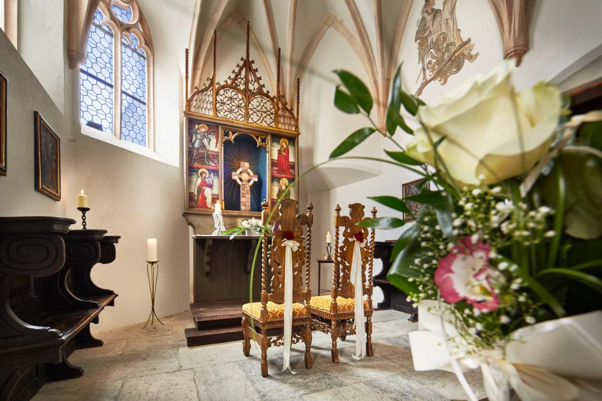 Les chambres et suites sont meublées individuellement dans un style qui allie l'élégance historique aux détails contemporains. Beaucoup présentent des meubles d'époque et des tissus précieux, garantissant une atmosphère de luxe et d'authenticité. Les épais murs du château et les vues sur les montagnes environnantes (Alpes de Kitzbühel et Parc National des Hohe Tauern) créent un sentiment d'isolement et de paix.