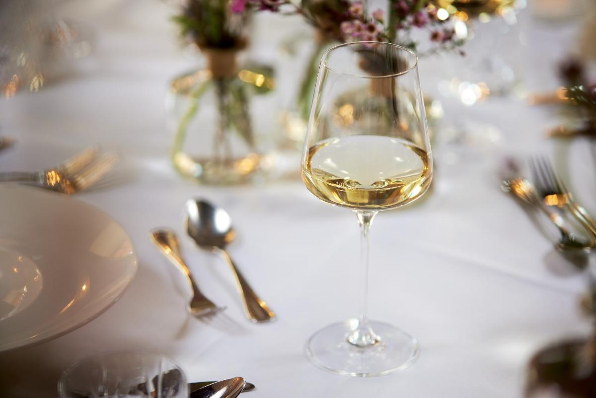 Le restaurant gastronomique du château sert une cuisine autrichienne et internationale raffinée, avec un fort accent sur les produits régionaux et de saison. Les clients peuvent dîner dans les salles historiques du château ou sur la terrasse panoramique qui offre une vue inoubliable sur les vallées et les sommets enneigés, sublimant chaque repas.